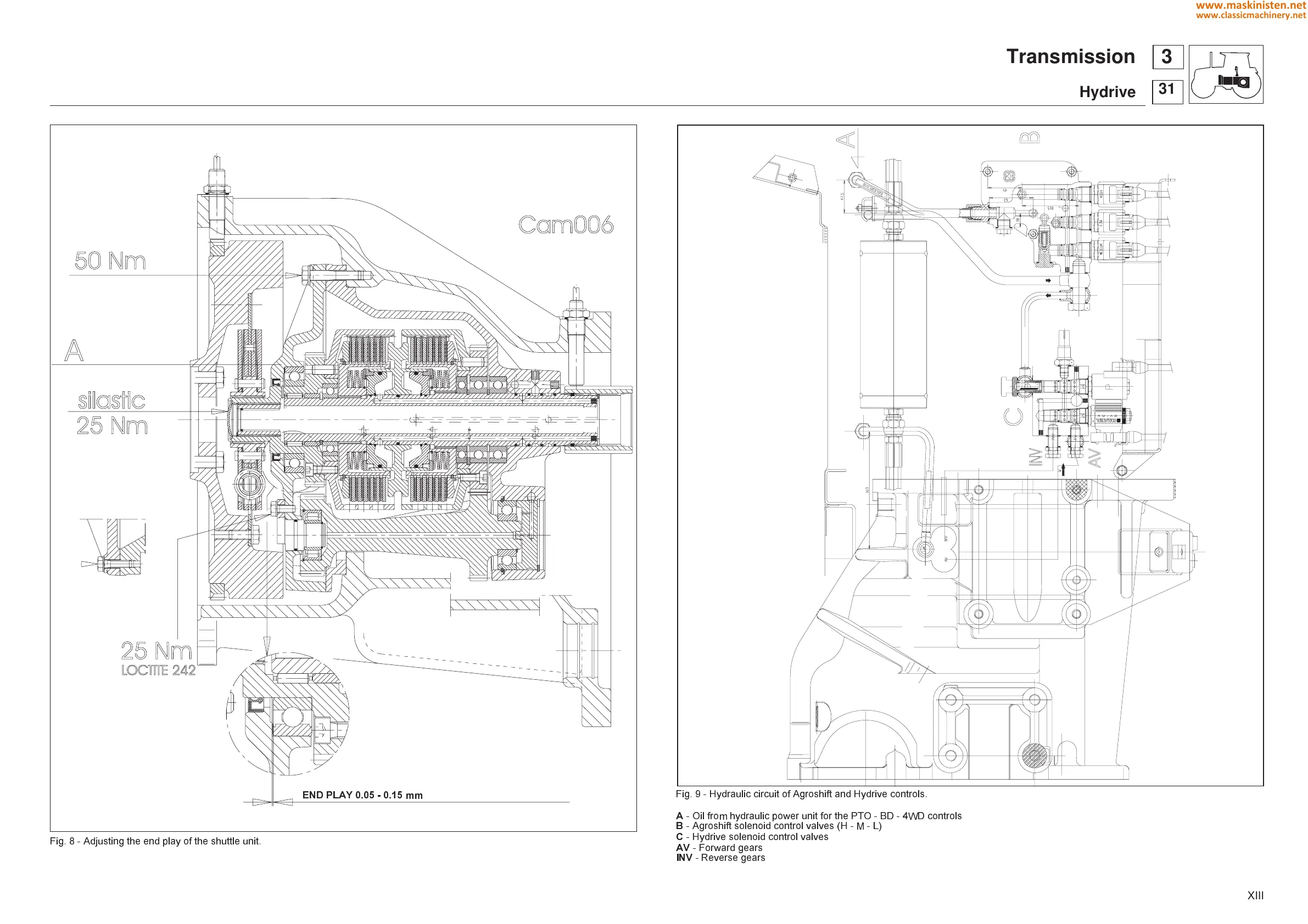 Fig. 9 - Hydraulic circuit of Agroshift and Hydrive controls.