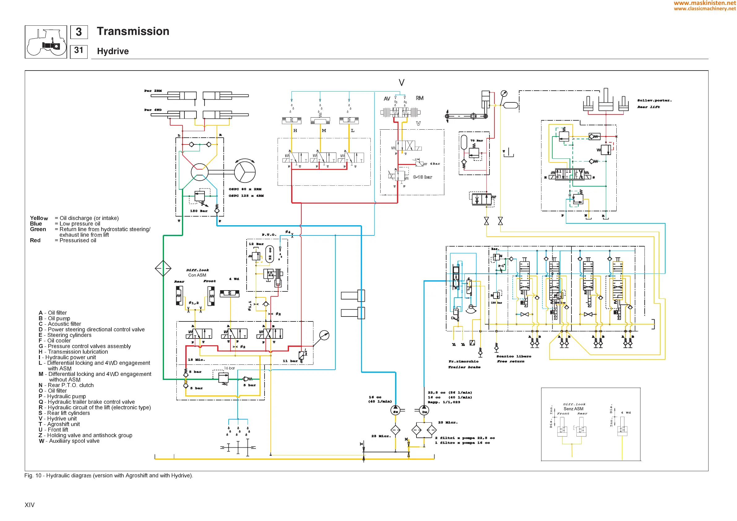 Fig. 10 - Hydraulic diagram (version with Agroshift and with Hydrive).