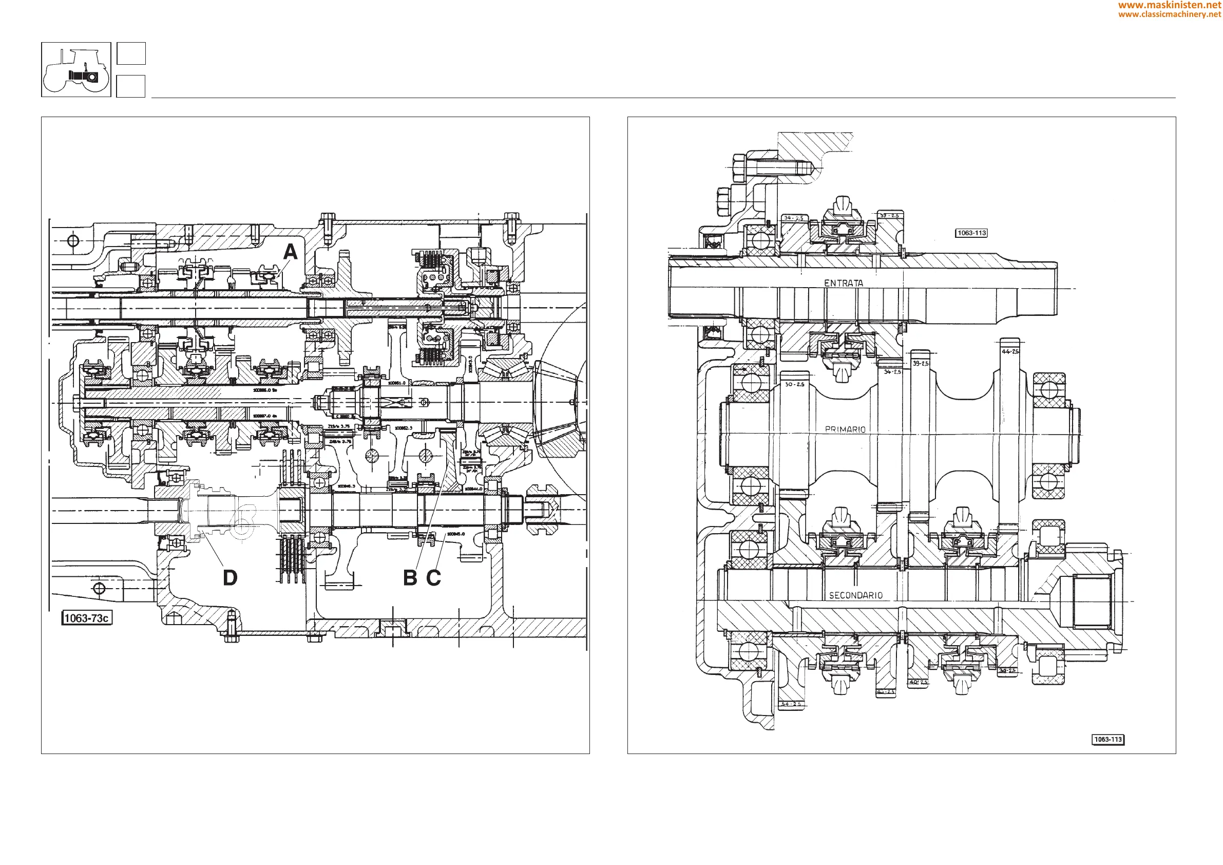 Fig. 10 - Gearbox longitudinal section (models without S.B.A.).