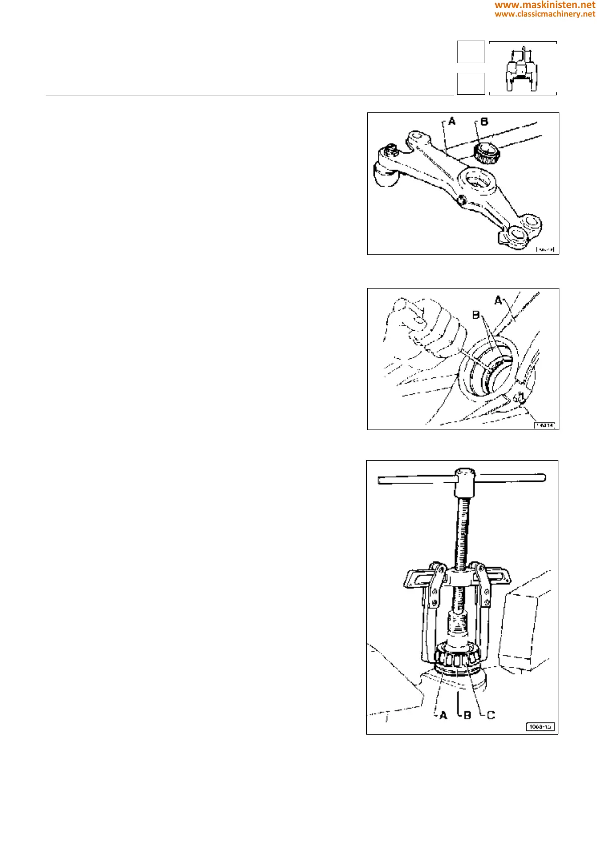 — Still using a universal puller (see fig. 15) remove bearing C and