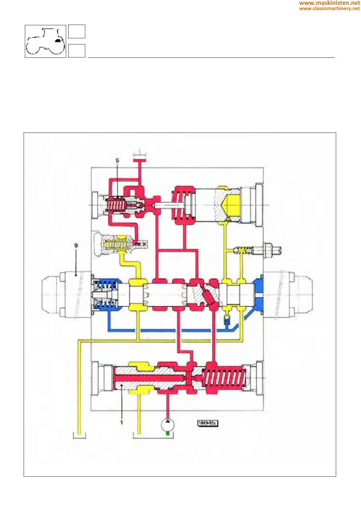 Implement raising is obtained by supplying current to electrovalve 9, whose stem is moved to the left.