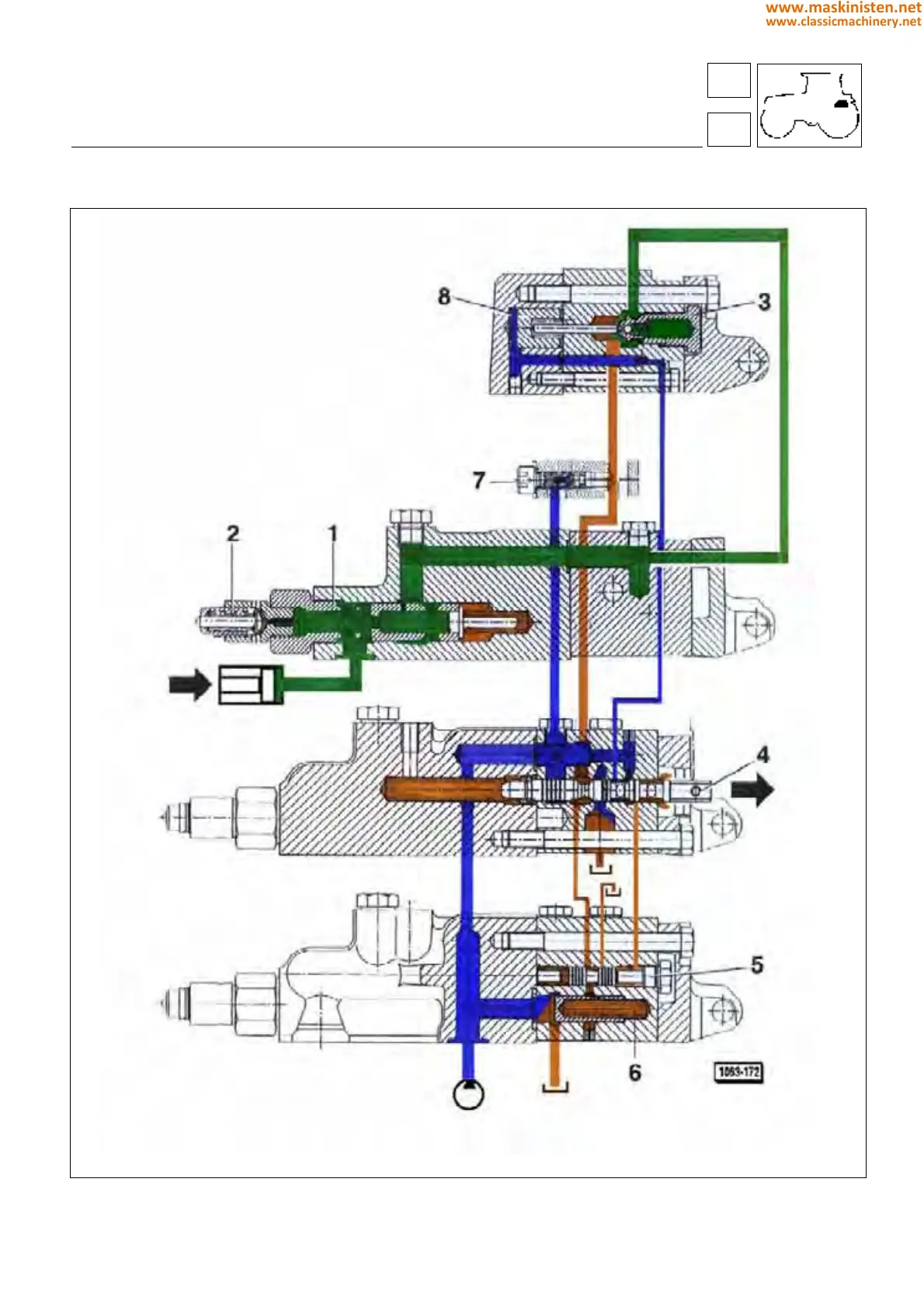 Green = Oil from hydraulic pump