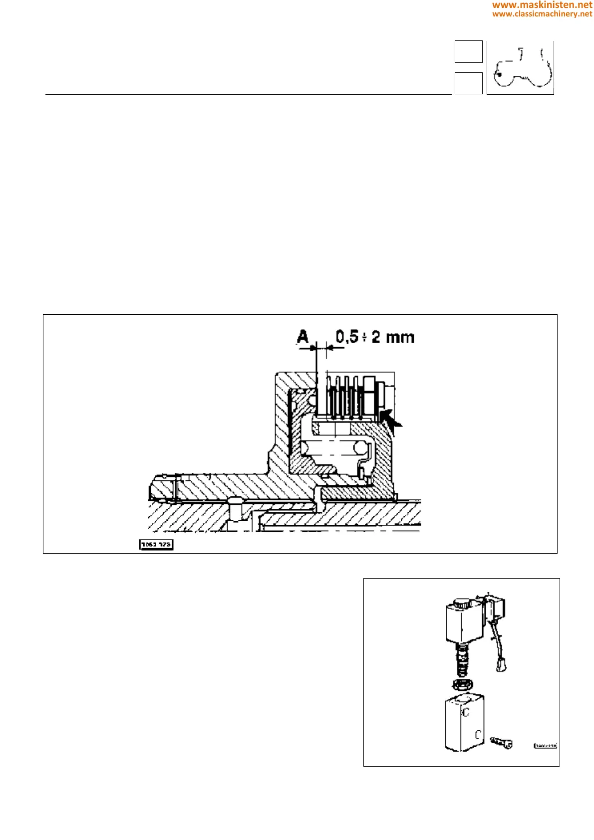 If the clearance is greater than the maximum value indicated, add 1 x shim p/n 2.1599.499.0 at the position arrowed.