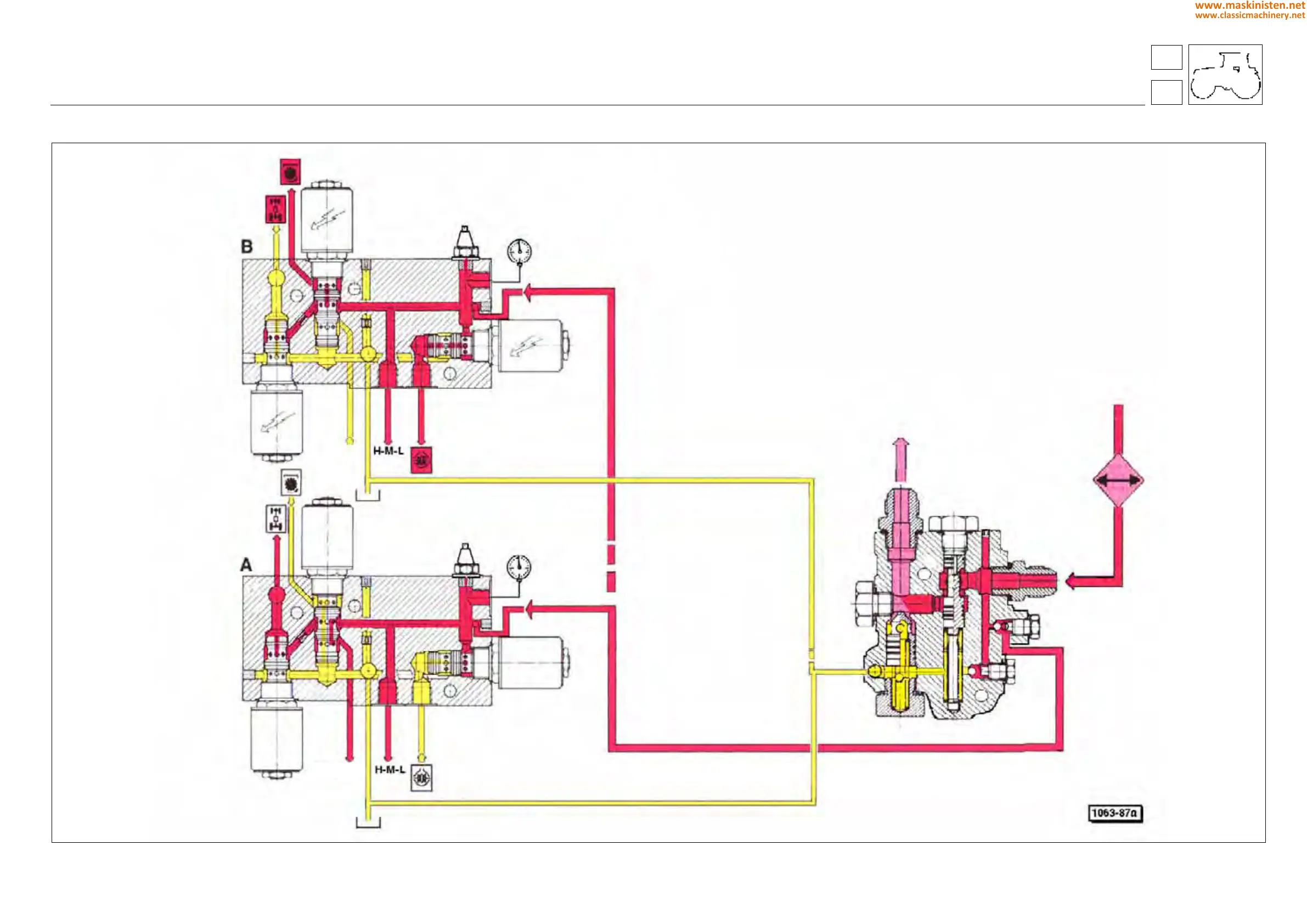 Fig. 6 - Hydraulic power unit operating diagram - machine without SBA SYSTEM and with pressure control valve.