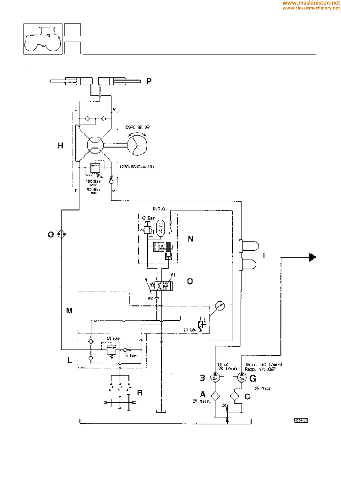 Fig. 11 - Hydraulic circuit diagram for machine not equipped with electrohydraulic controls.