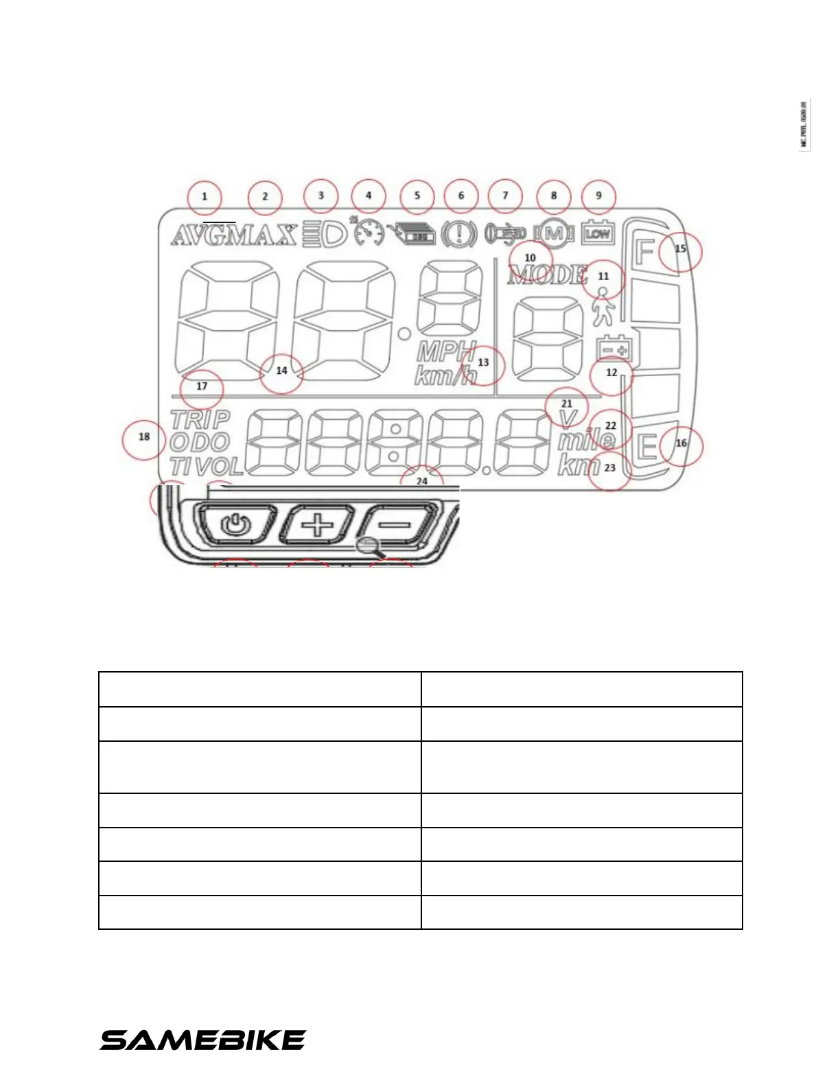Samebike T7 2019 - LCD Display Functions; Presentation of Screen