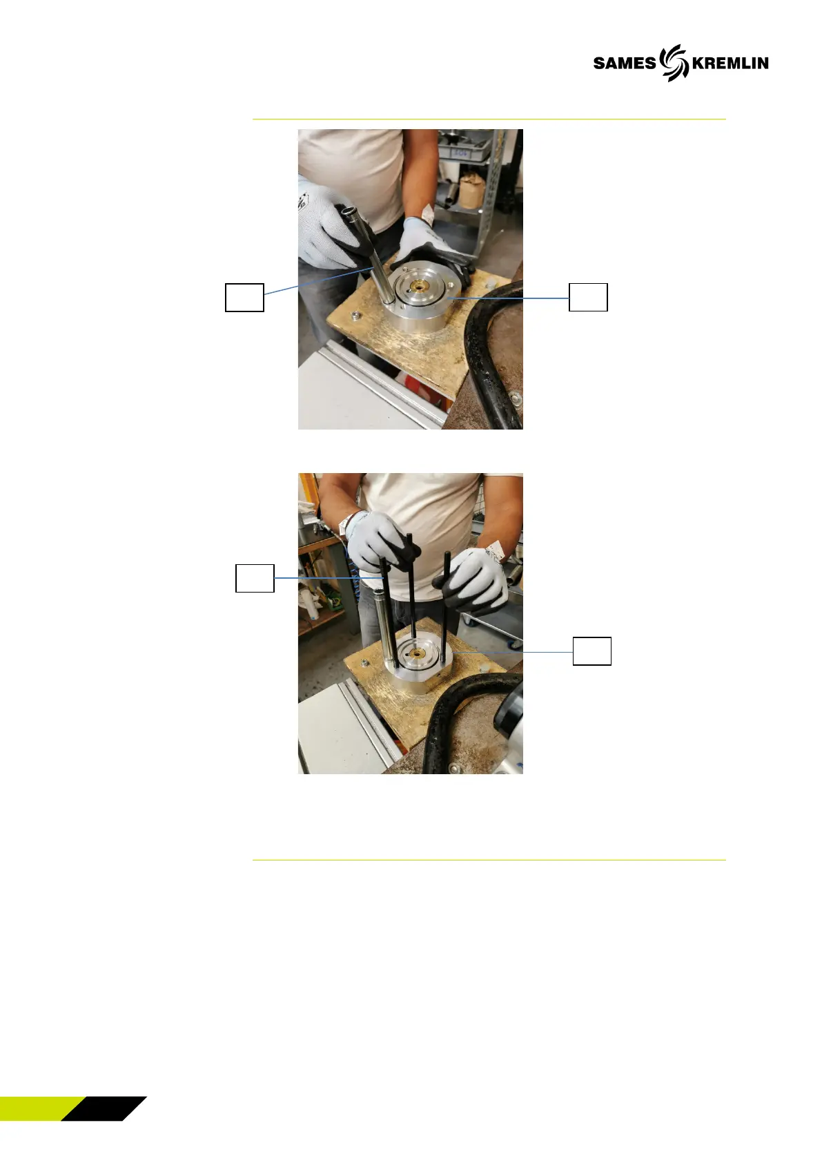 Screw the 3 tie rods (22) on the lower flange (3) with a