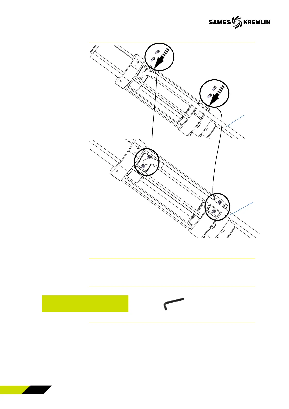 Tighten the 4 M 6 x 6 SHC screws of the fluid tube (47)