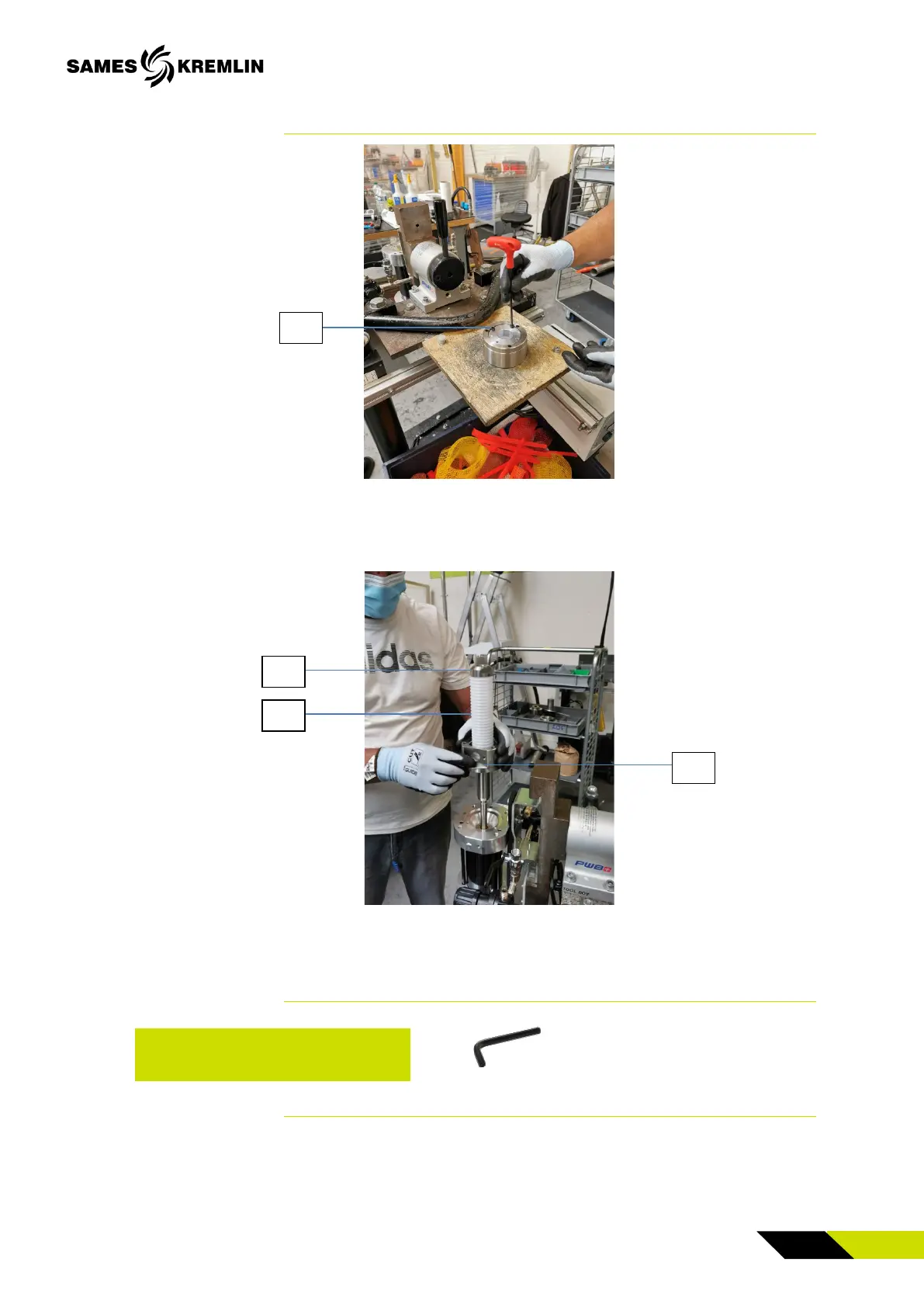 Using a 4 mm Allen wrench, screw in the 4 screws (14)