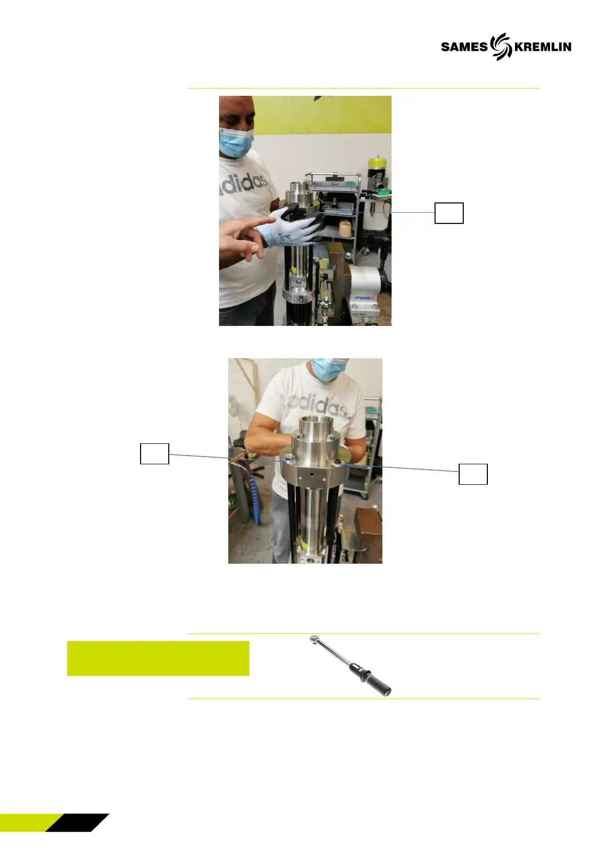 Screw on the 4 nuts (4) using a 17 mm socket wrench.