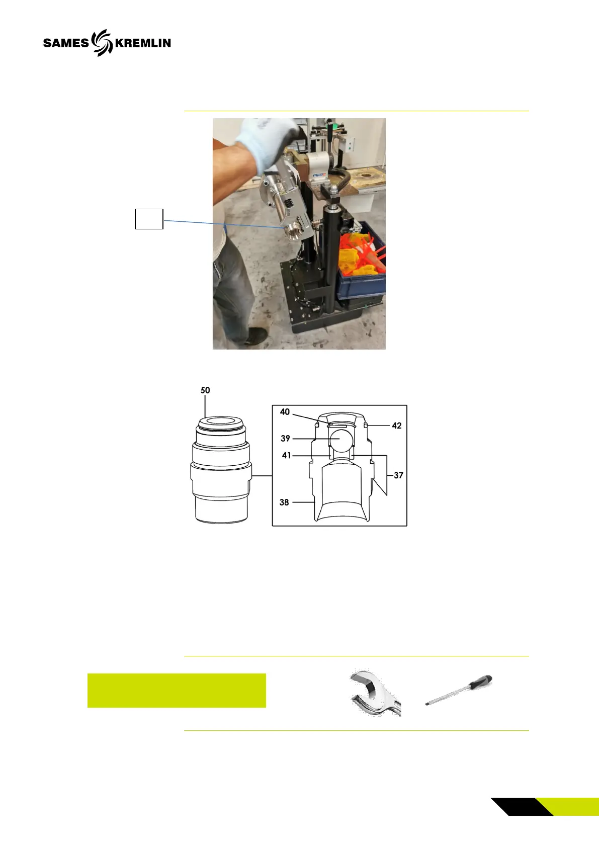 Unscrew the suction valve (50) with a 41 mm wrench.