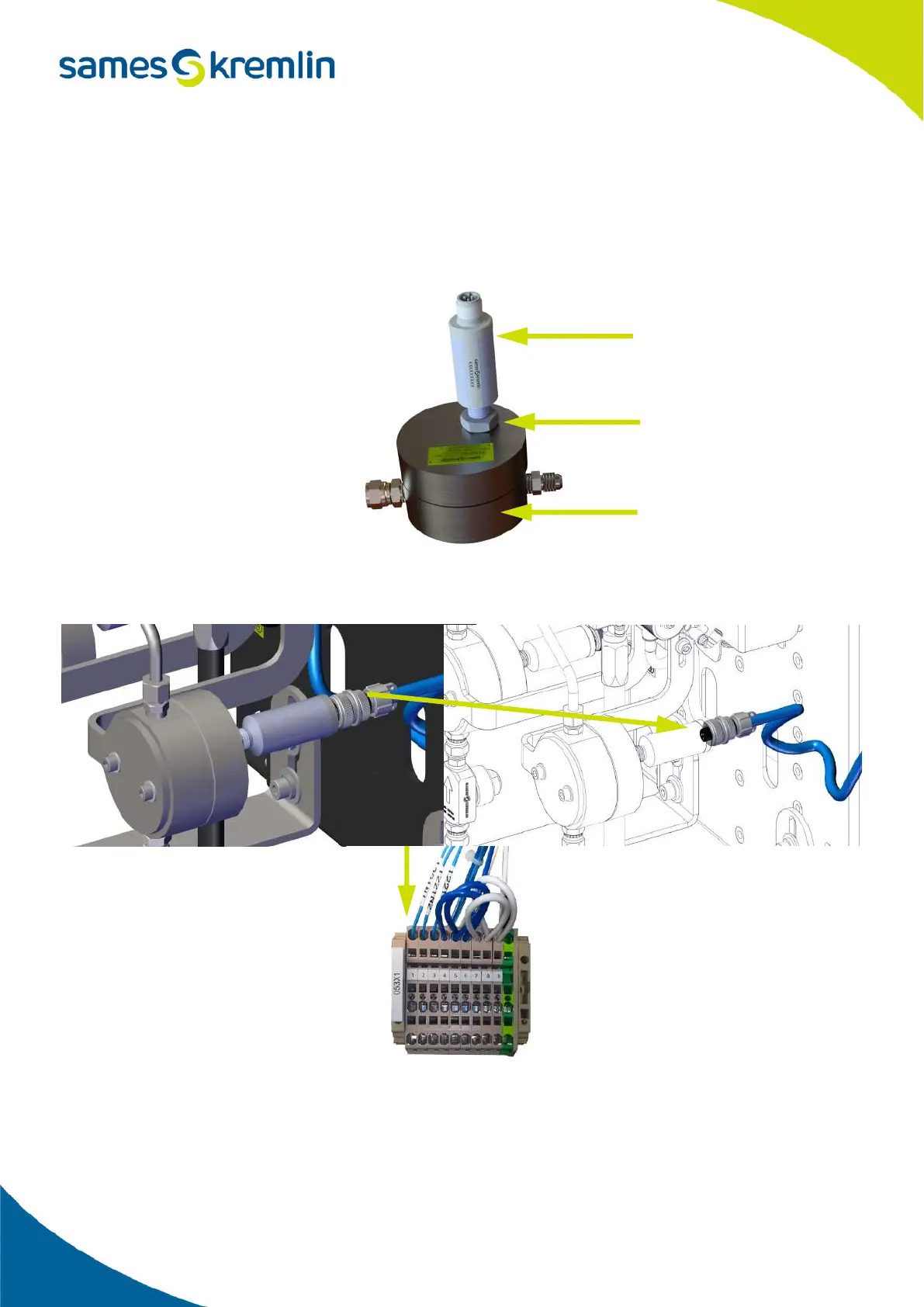 On the flowmeter side, the sensors are screwed in and locked with the locknut. The sensor must be screwed in order