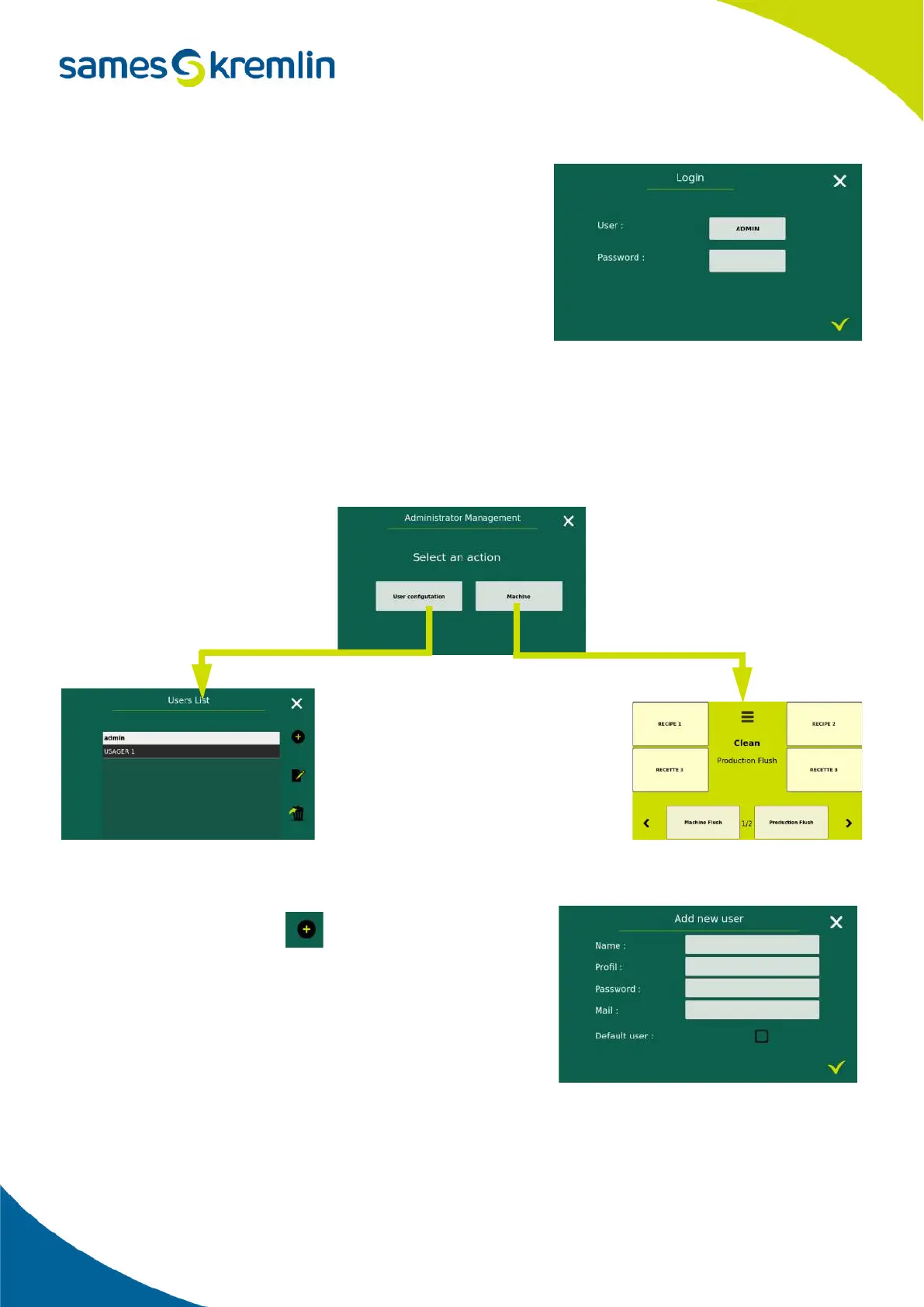 If the user has an "administrator" profile, then after validation of his or her information, a screen will appear where the