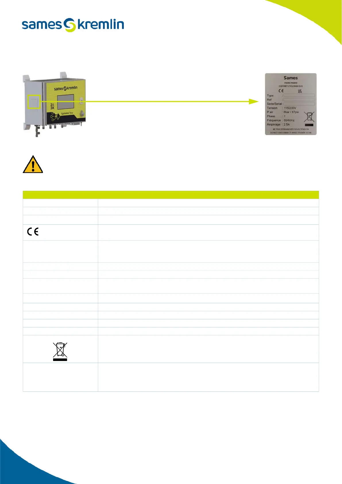 Série/Serial Number given by SAMES