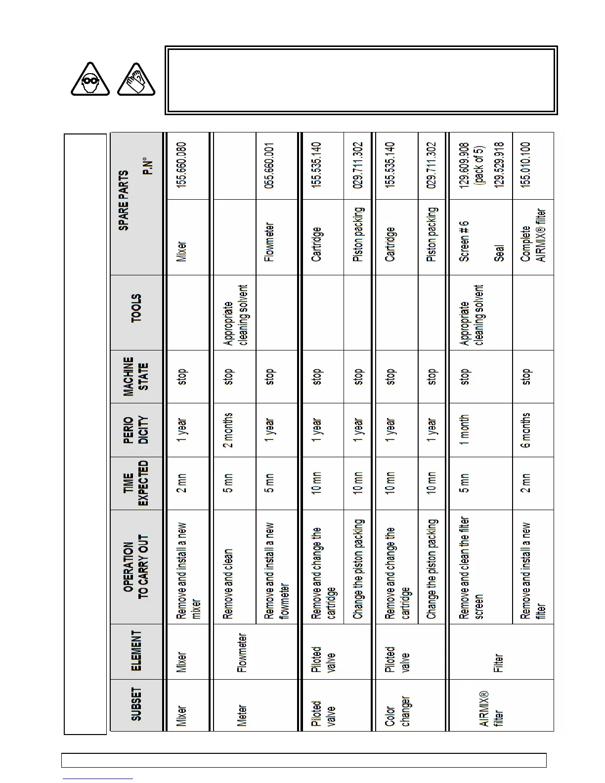 pot life parameter to avoid hardening. Carry out a flushing when the work is