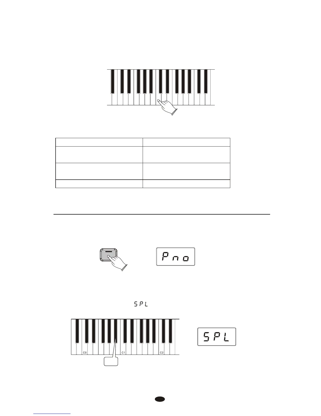 Press any key on the keyboard between C0 and C7 to select the Split Point.