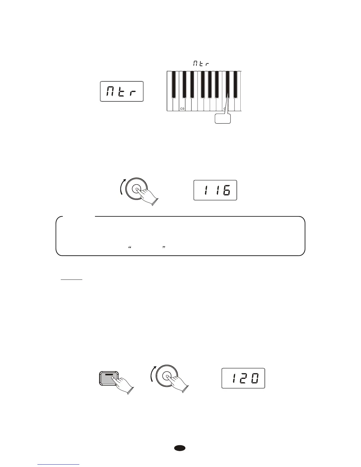 Press and hold the Metronome button . The LED display will show the current