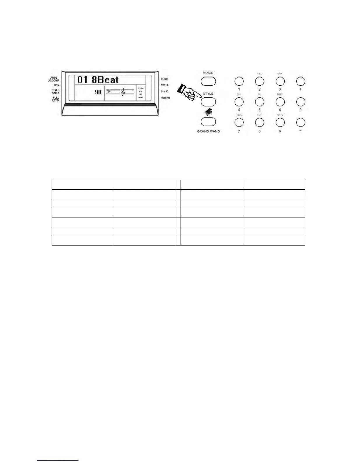 Press the numeric key-pad buttons or the [+/-] buttons to select the desired style number with the