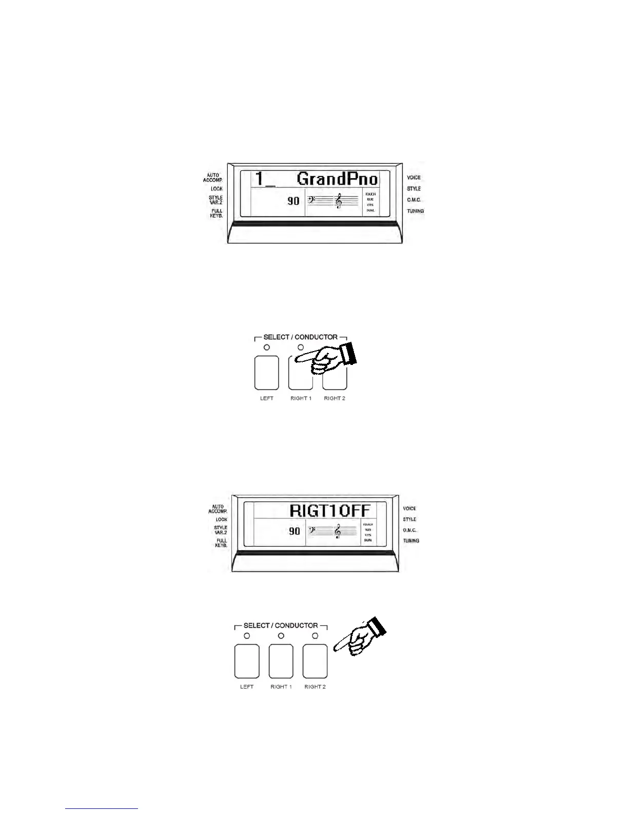 indicated on the display for a few seconds also indicating the RIGHT 2 sound selected at present.