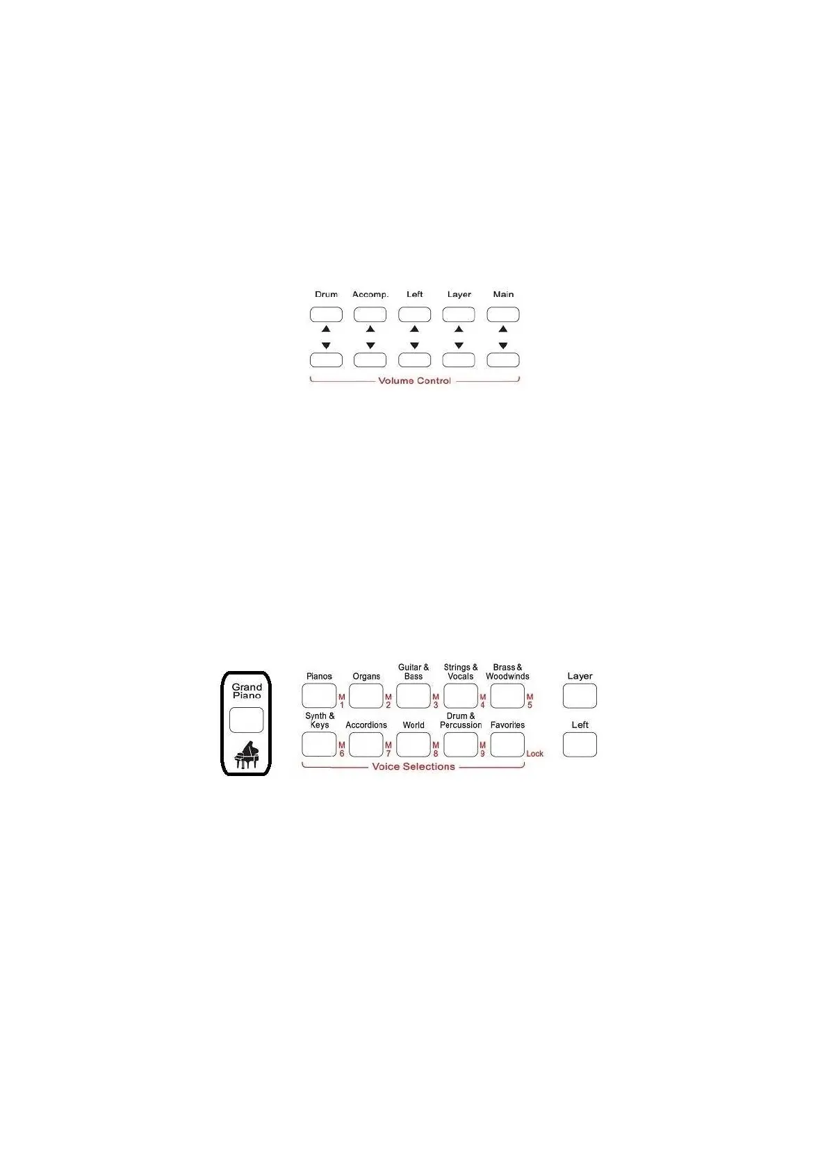 - The MAIN buttons will control the volume of the Main Voice.