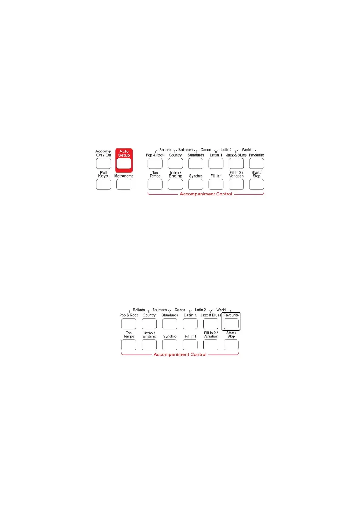 - Press and hold the FAVORITE button in the Accompaniment Control section