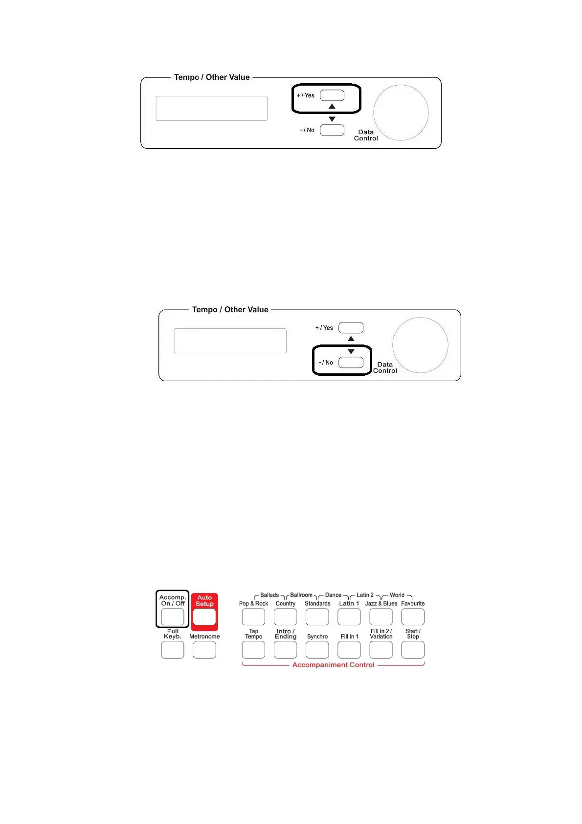 Press the “Accomp. On/ Off” button to turn on the Auto Accompaniment function.