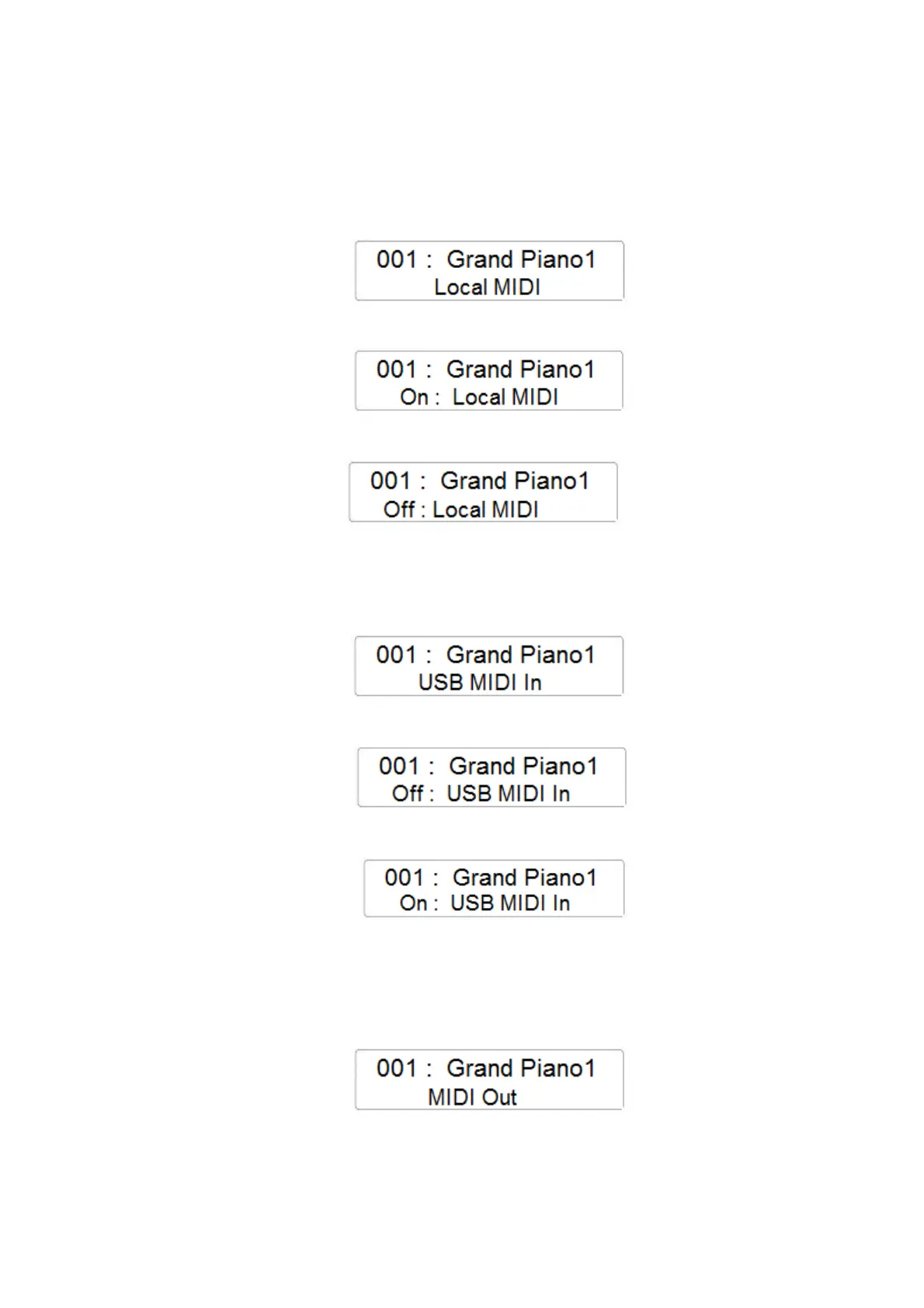 - Press the ENTER button to confirm and the display will indicate the current Local Midi
