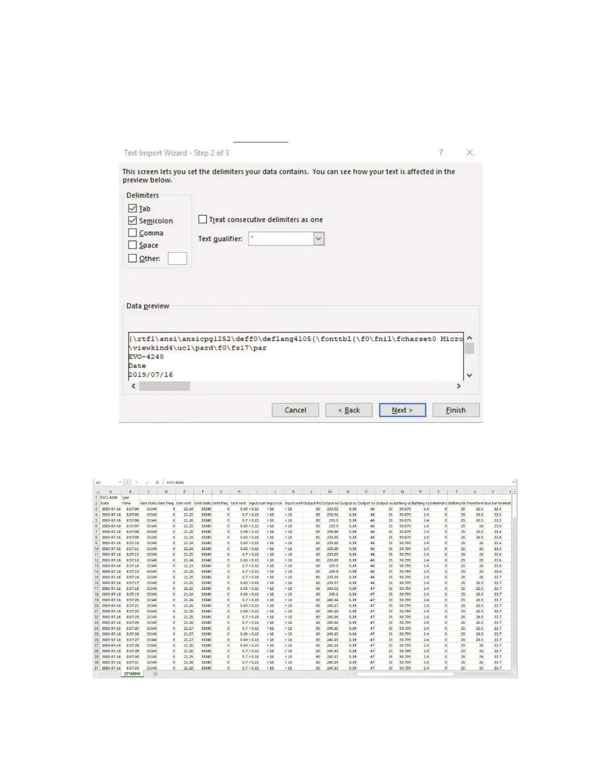 • Text Import Wizard – Step 2 will appear (See Fig 5.3). Choose "Semicolon" and click 'Finish' button.