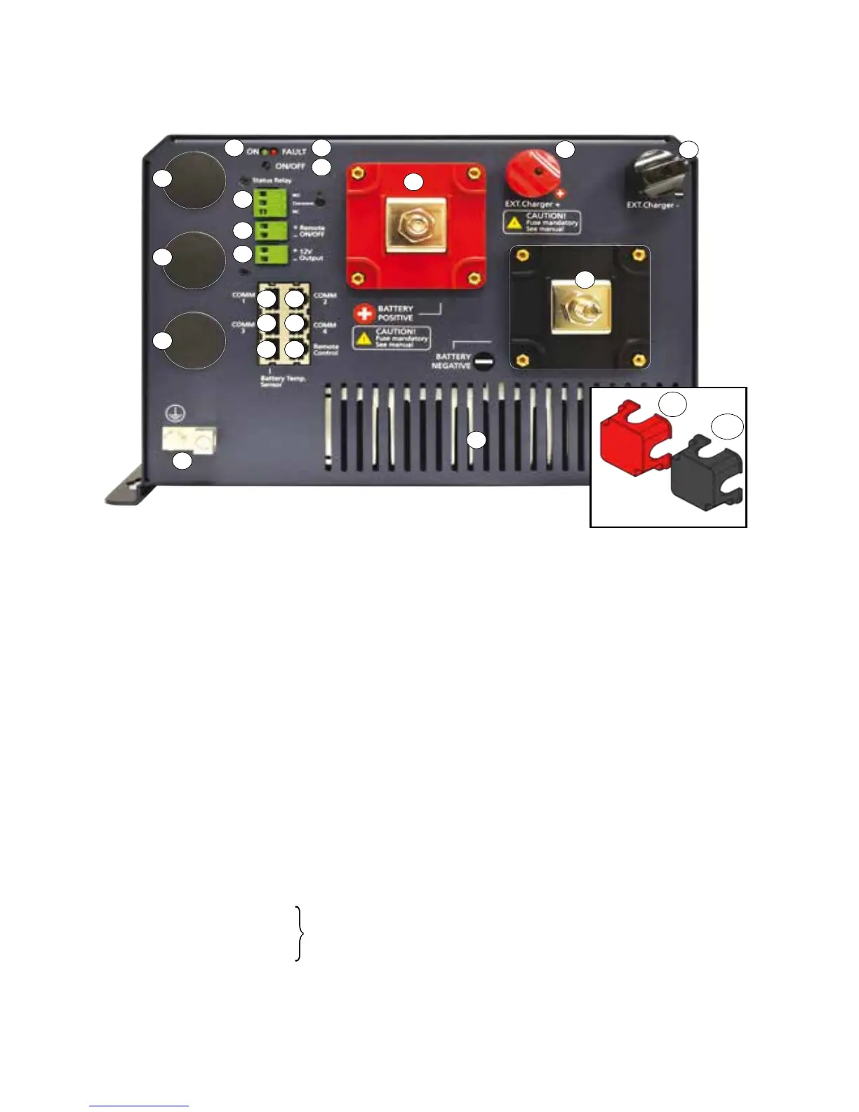 1. Battery Positive (+) Input Connector – M10 x 1.25 Nut & Bolt (RED Protection Cover 1(a) is Removed)