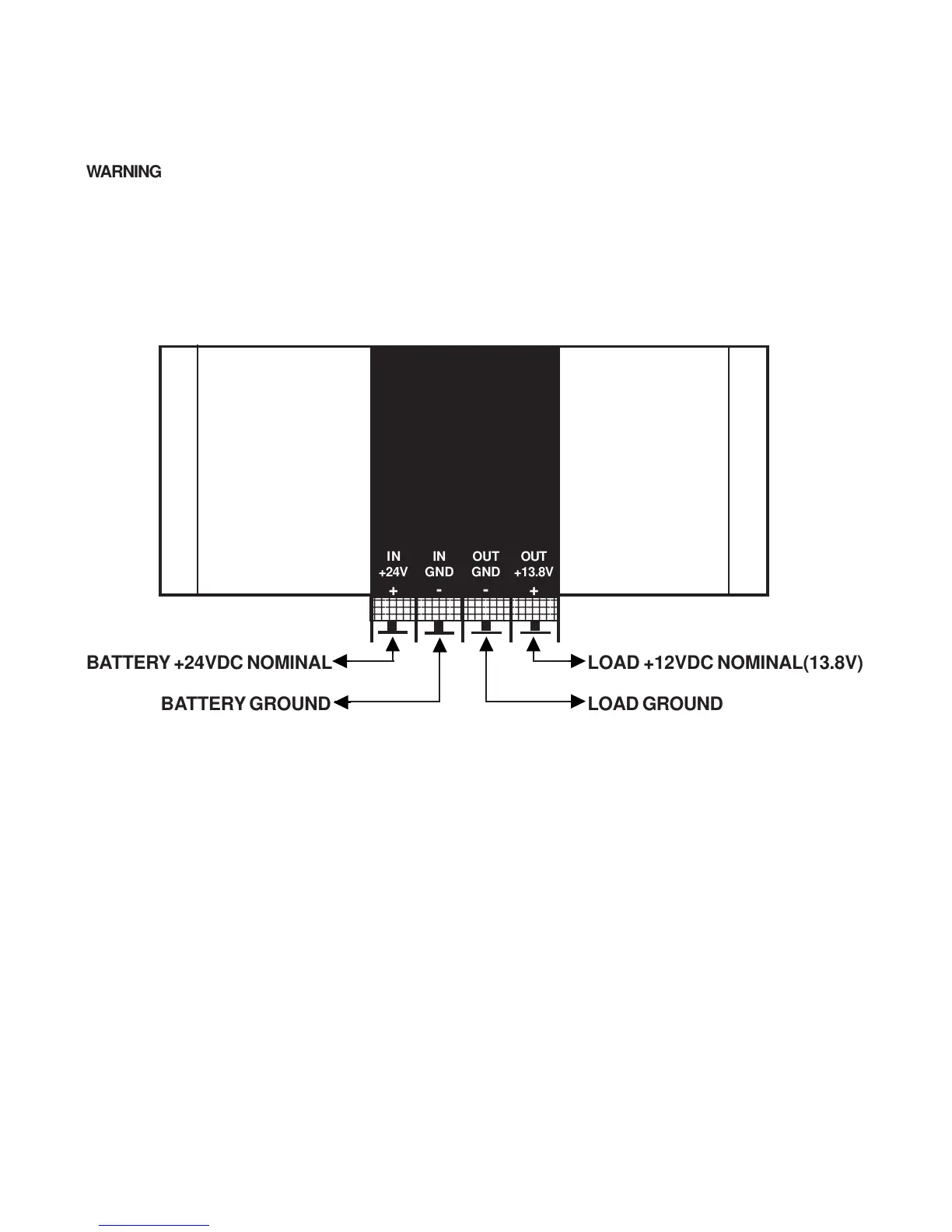 (range 20 VDC to 35 VDC) to 12 VDC nominal voltage (13.8 VDC). The input and output sides have