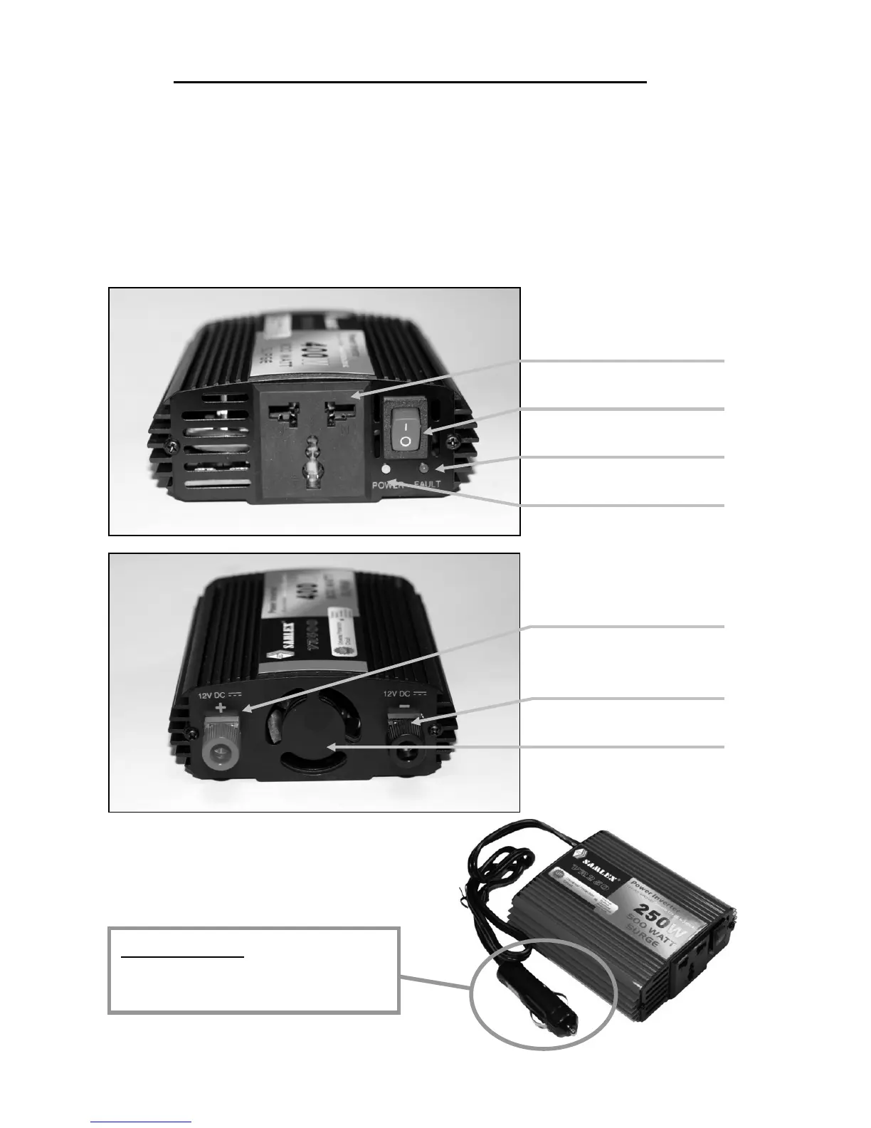 Figure 1 & 2 detail the front & back panel of the inverter. The front panel