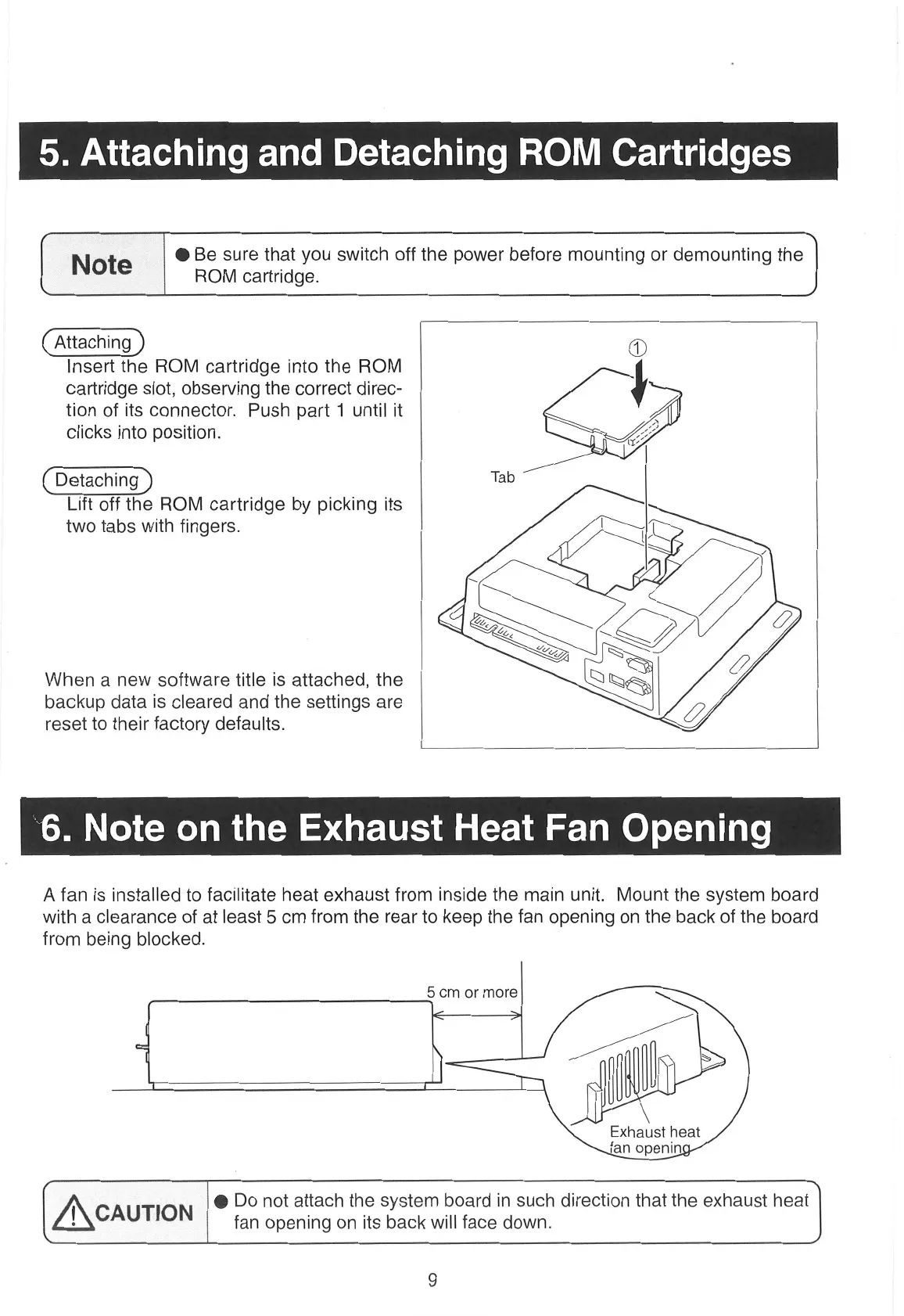 A fan is installed to facilitate heat exhaust from inside the main unit. Mount the system board