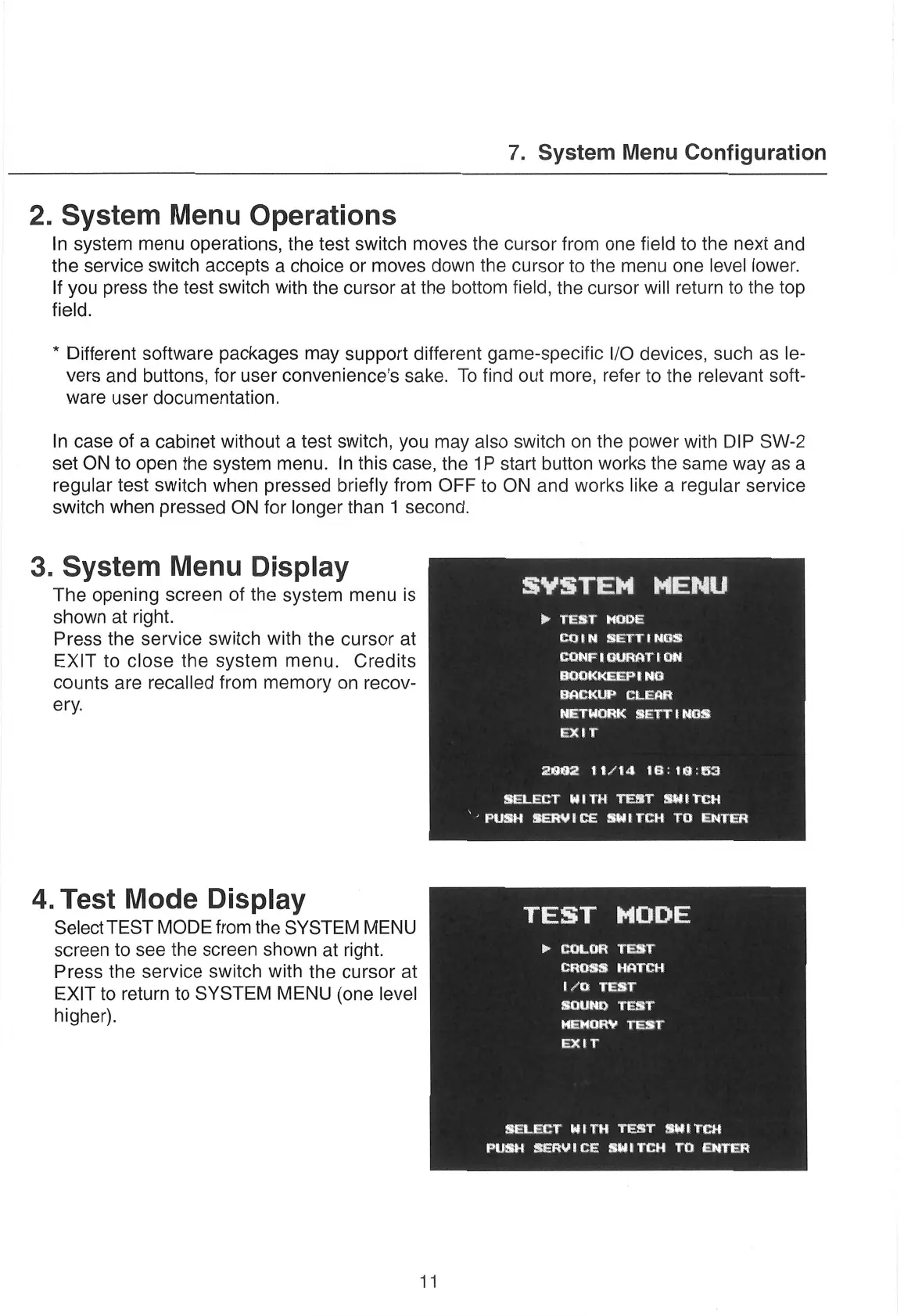 Select TEST MODE from the SYSTEM MENU