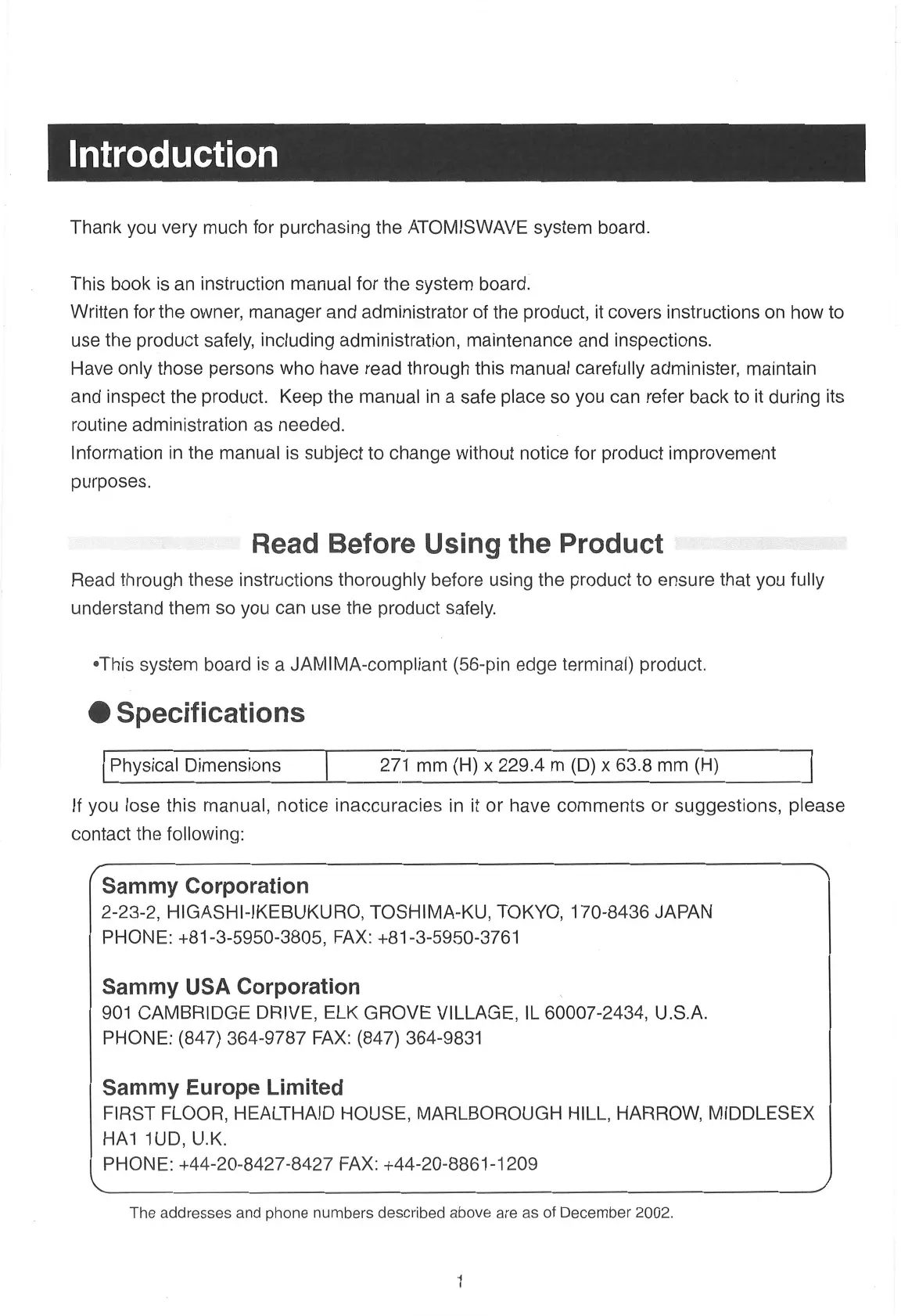 Thank you very much for purchasing the ATOMISWAVE system board.