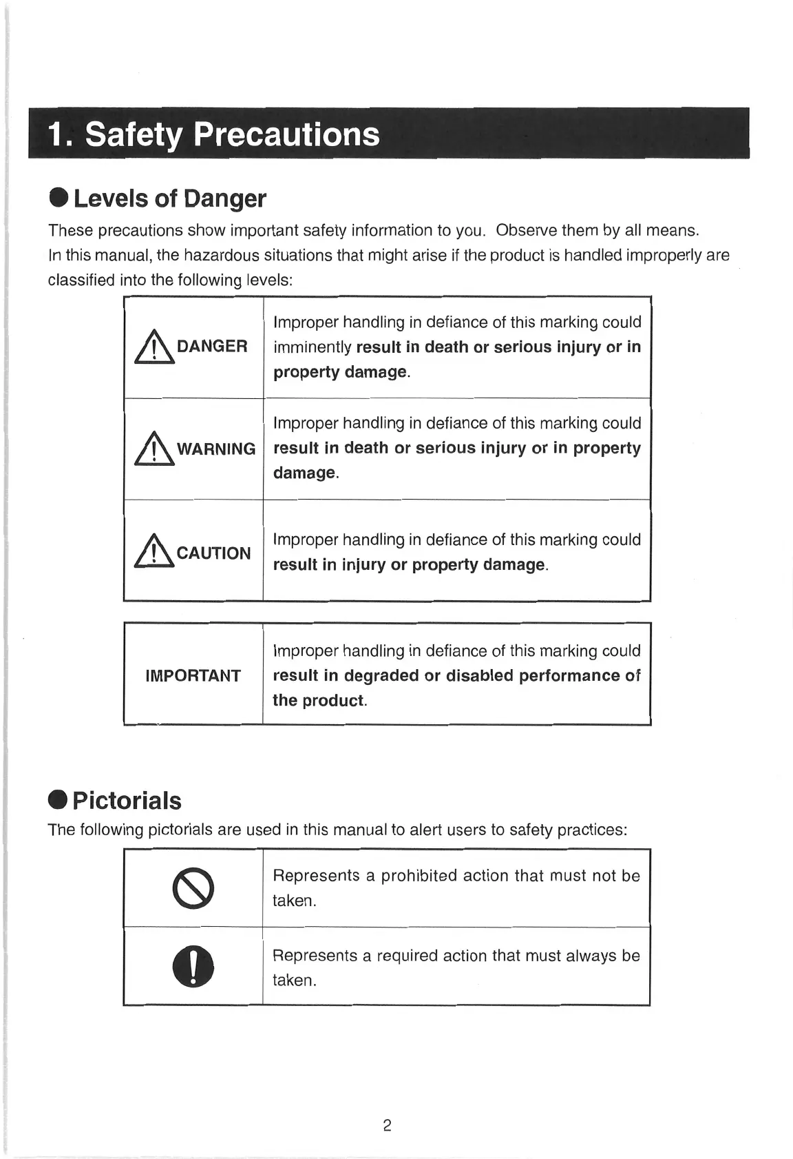 In this manual, the hazardous situations that might arise if the product is handled improperly