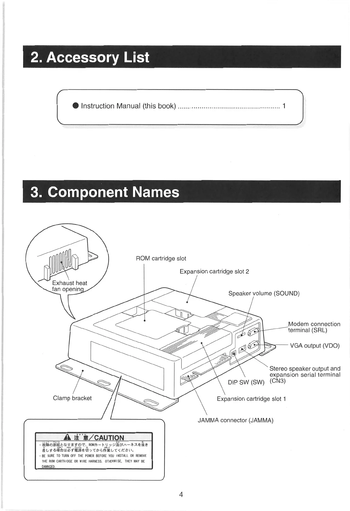 Sammy Atomiswave - Component Identification; Component Names; Accessory List