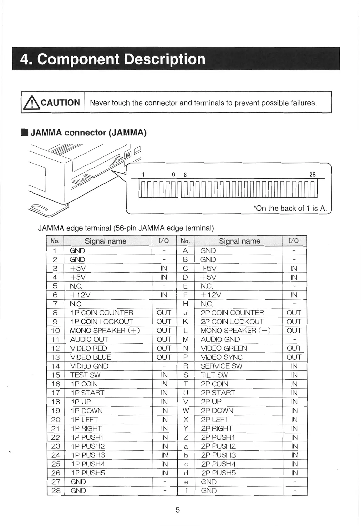 Sammy Atomiswave - Component Descriptions; JAMMA Connector Description