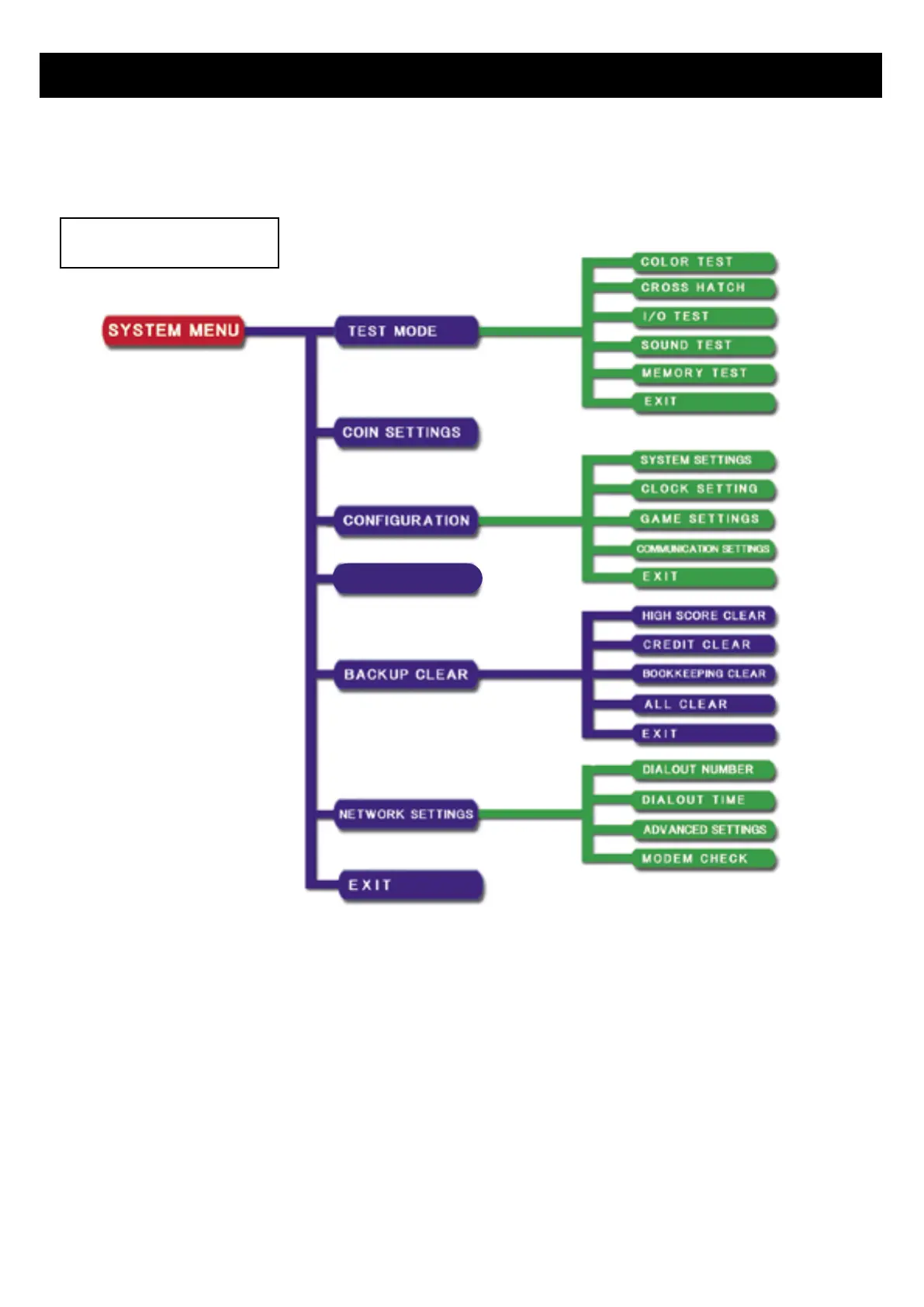 go to SYSTEM MENU. Press 1P START switch quickly to move cursor. Press &