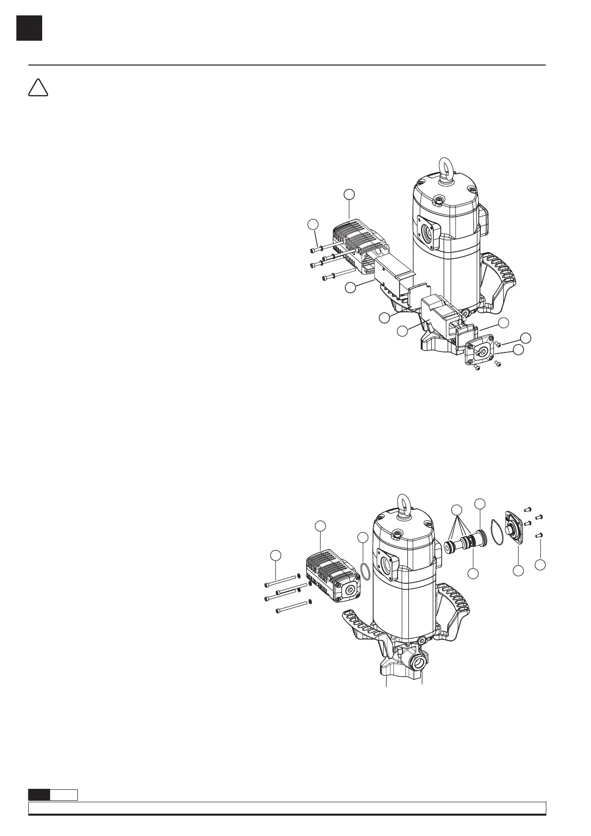 3. Dévisser les boulons (G) et enlever le bouchon (F).
