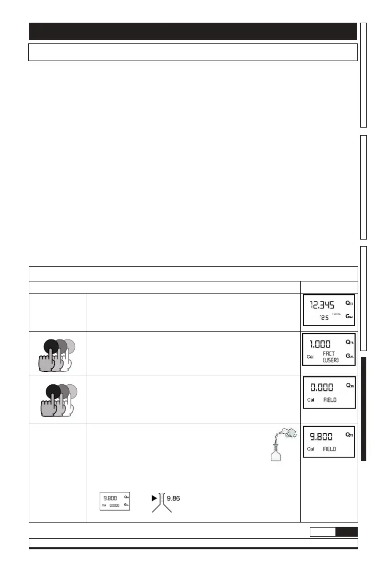 Gesamtmenge den verwendeten Kalibrierfaktor an (FACT oder USER).