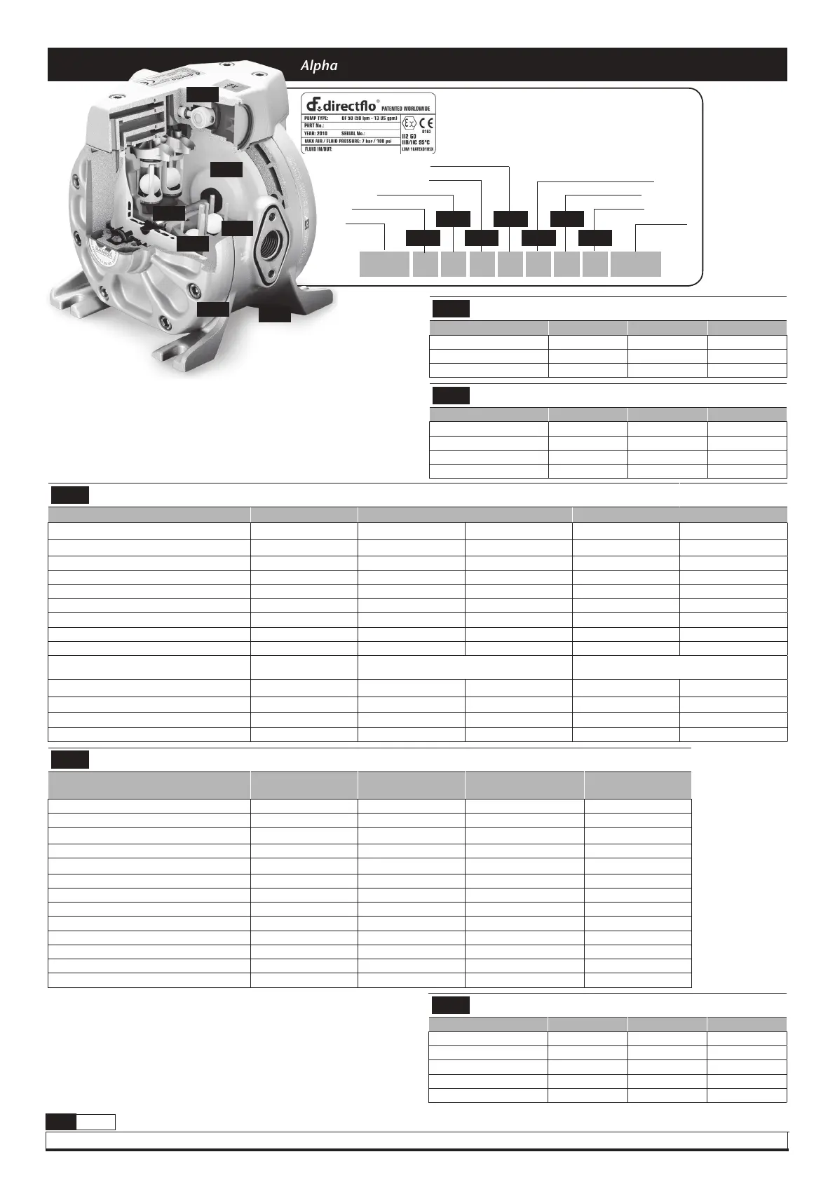 Alphanumeric pumps repair kit codes