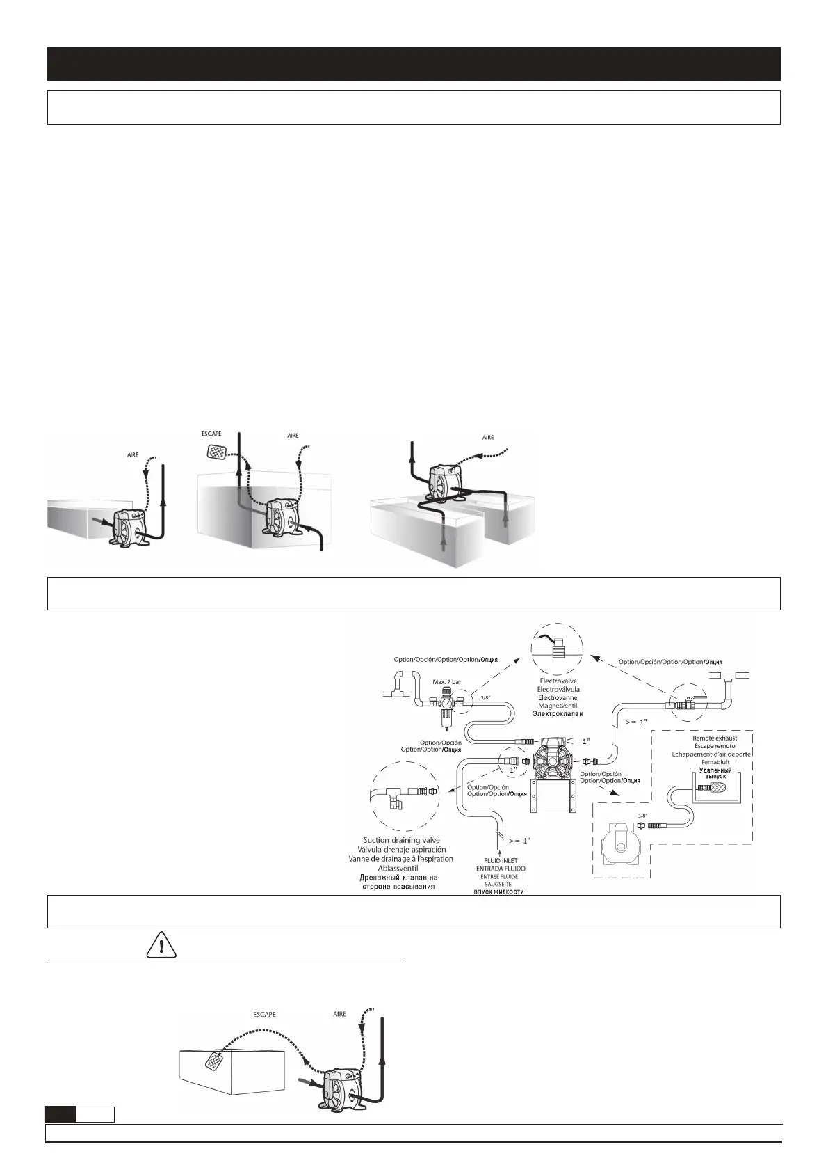 fluido deben ser conducidas al exterior mediante mangueras. (Sistema de