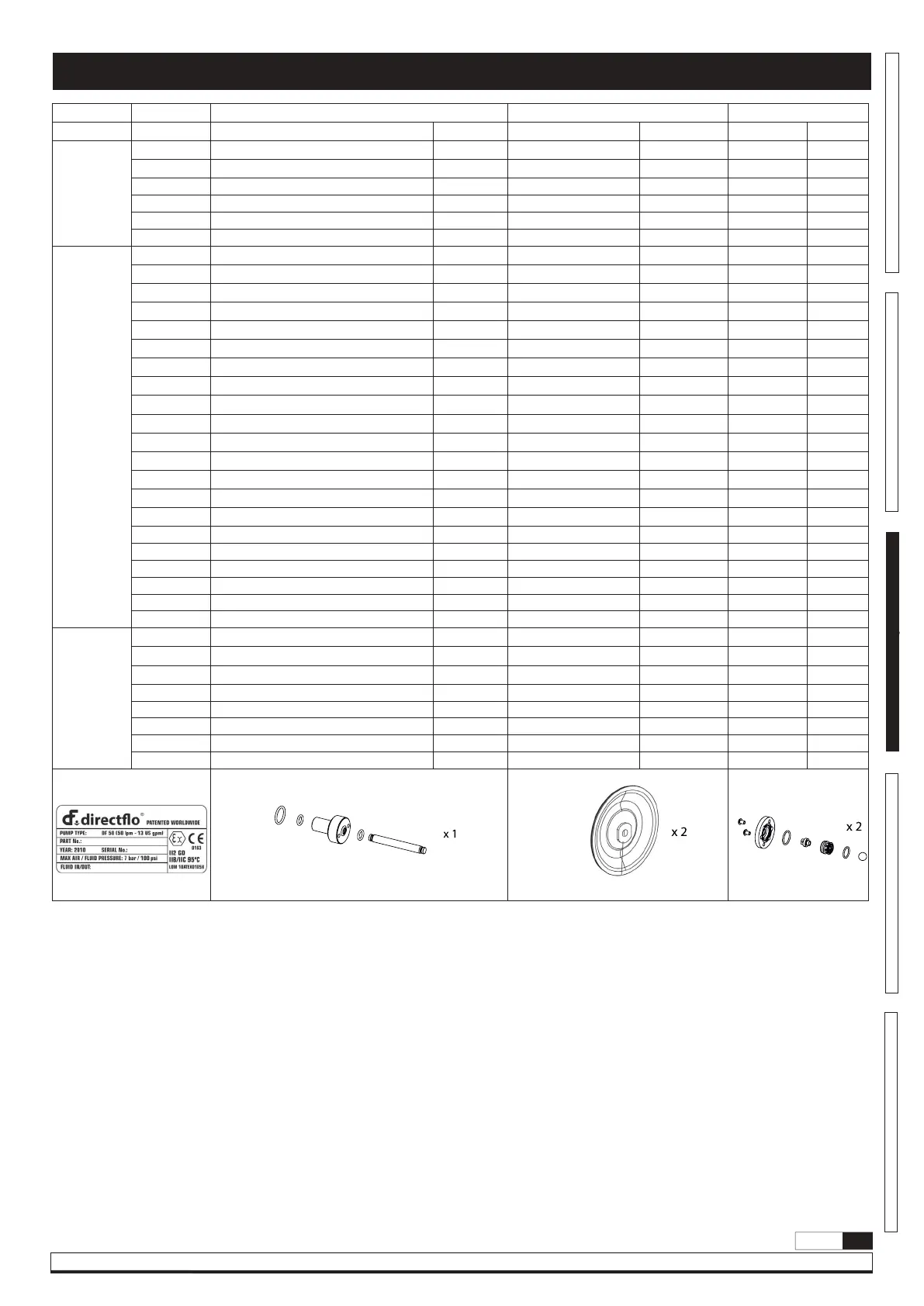 Kits de réparation pour pompes avec code 55xxx (tableaux 1-5)