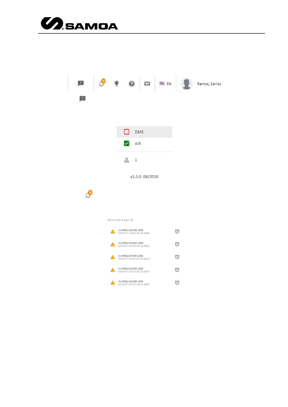 The first icon ( ) shows the status of the DMS (if configured) and the number of