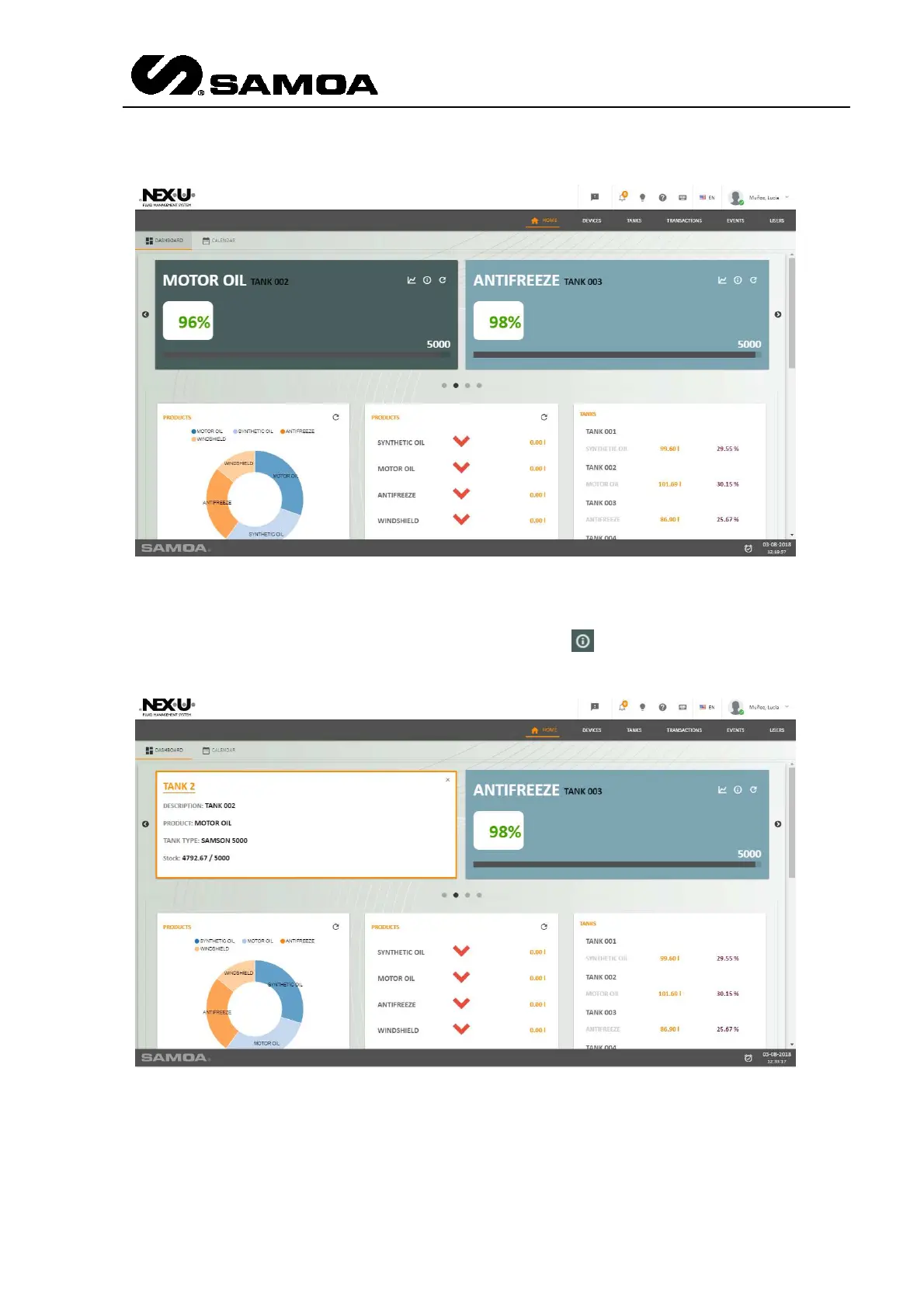 In the upper part you will see a rolling screen in which the situation of the tanks is