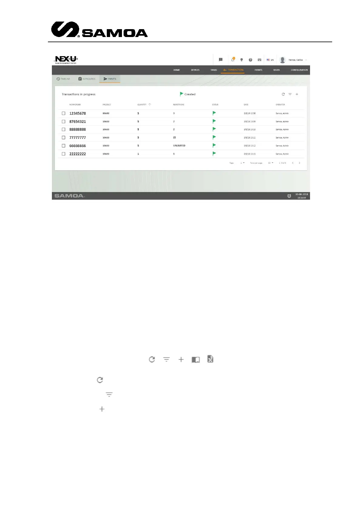Fifth column: It shows the status of the delivery. A green flag represents a work order