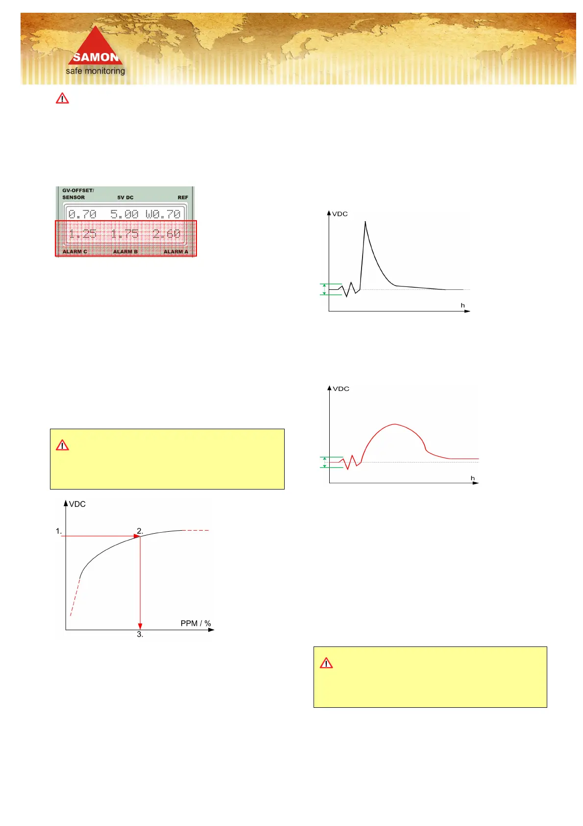 potentiometrar för inställning av larmnivåer, (gränsvärden) för