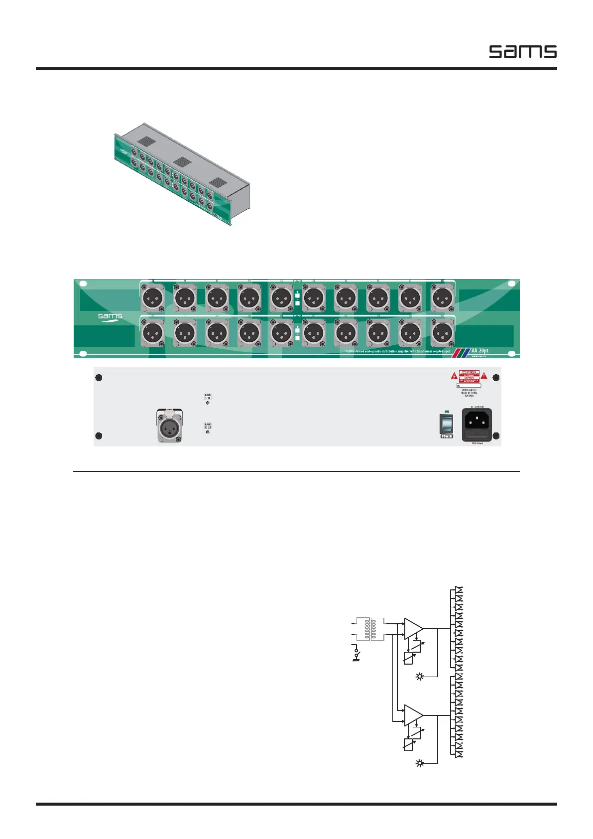individual ampliers for each output. The device have transformer at the entrance. Distribution automatically adjusts