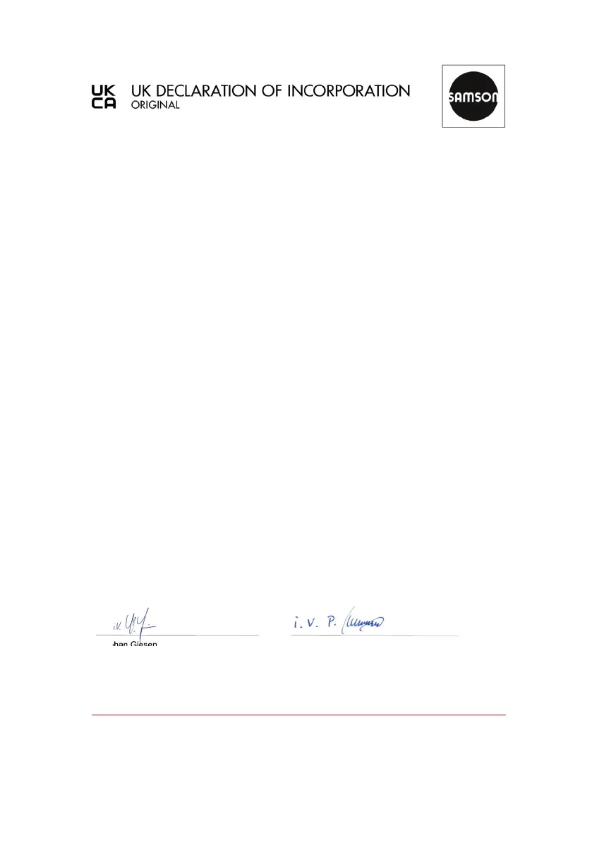 We certify that the Type 3244 Pneumatic Control Valves are partly completed machinery as defined in the in