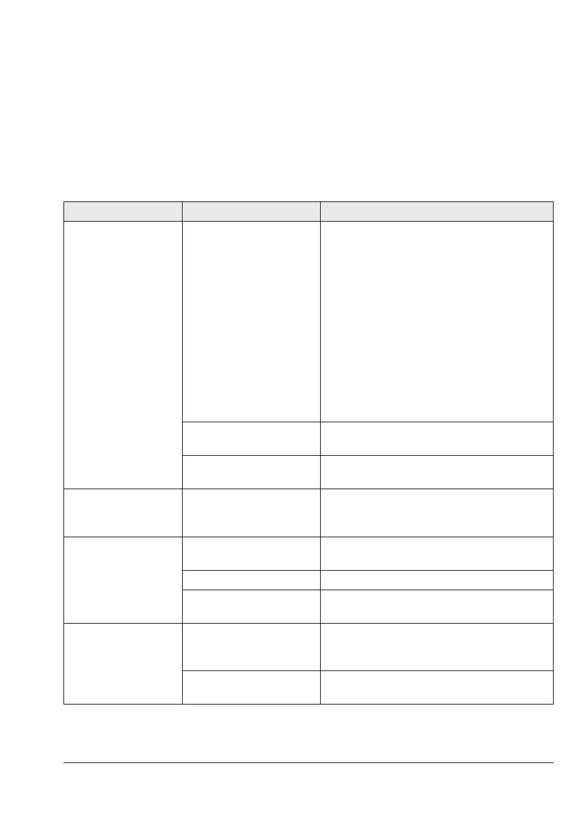 Malfunction Possible reasons Recommended action